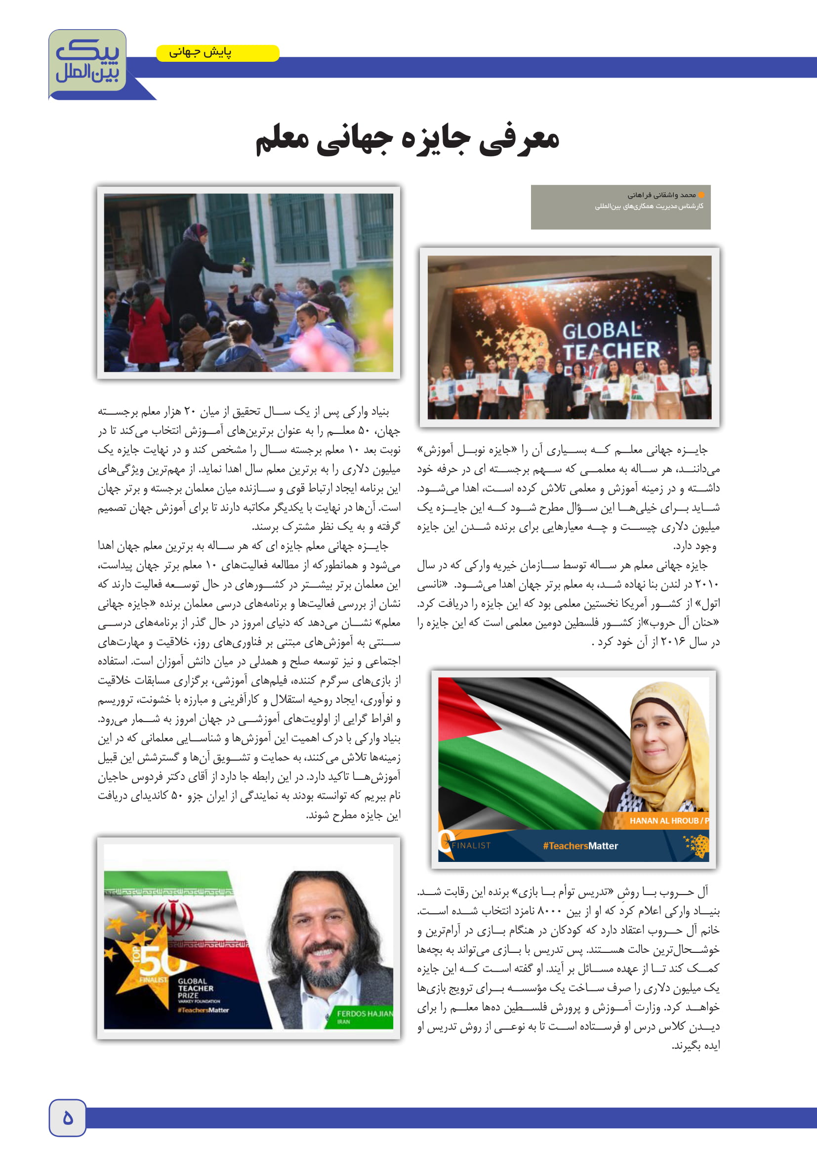 پنجمین و ششمین شماره نشریه پیک بین الملل منتشر شد