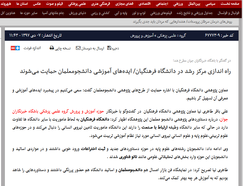 انعکاس خبری حضور معاون پژوهش و فناوری در غرفه دانشگاه فرهنگیان در نوزدهمین نمایشگاه دستاوردهای پژوهشی، فناوری و فن بازار