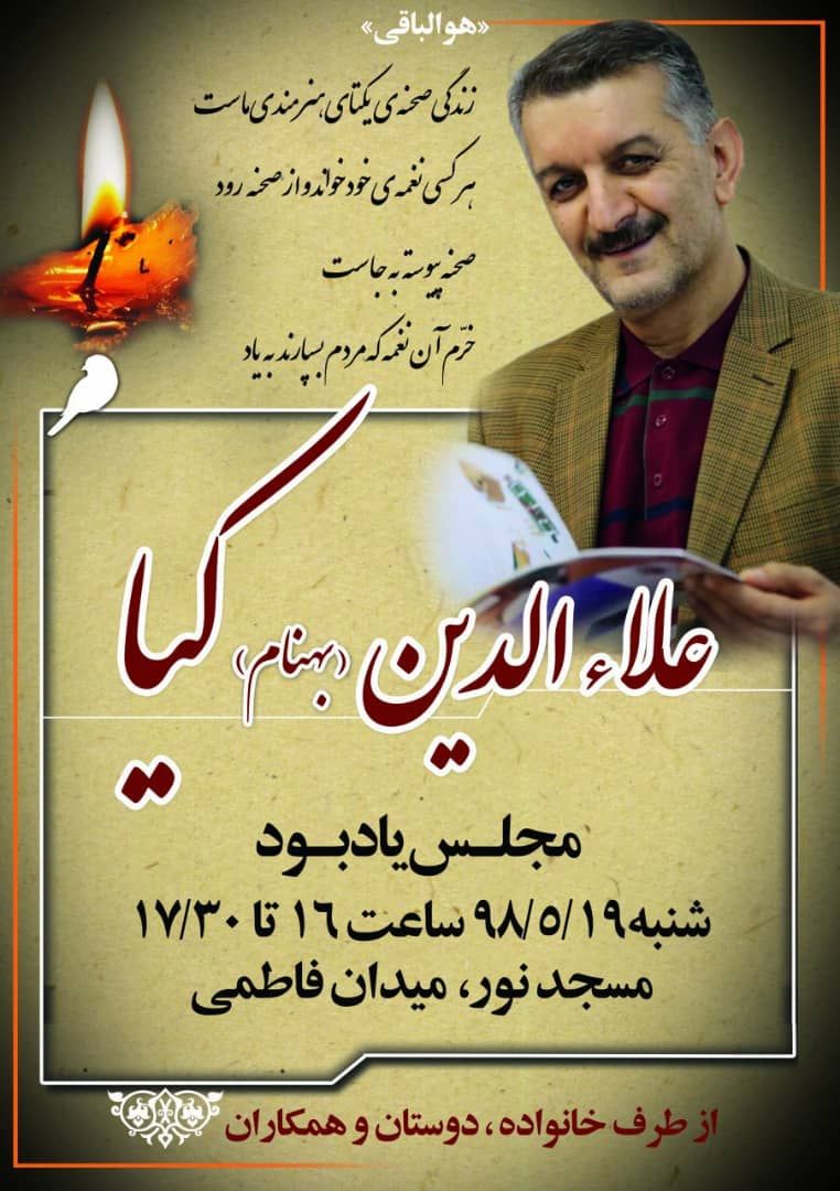 با کمال تأثر و تأسف، مطلع شدیم همکار عزیز و پرتلاش، برادر گرامی مان، جناب آقای "علاء الدین کیا" از مدیران ارزشمند دانشگاه فرهنگیان پس از مدتها تحمل رنجِ بیماری ساعاتی قبل دعوت حق را لبیک گفت، از میان ما رخت بربست تا در جوار رحمت حق، آسوده از هر گونه درد بیارامد.
