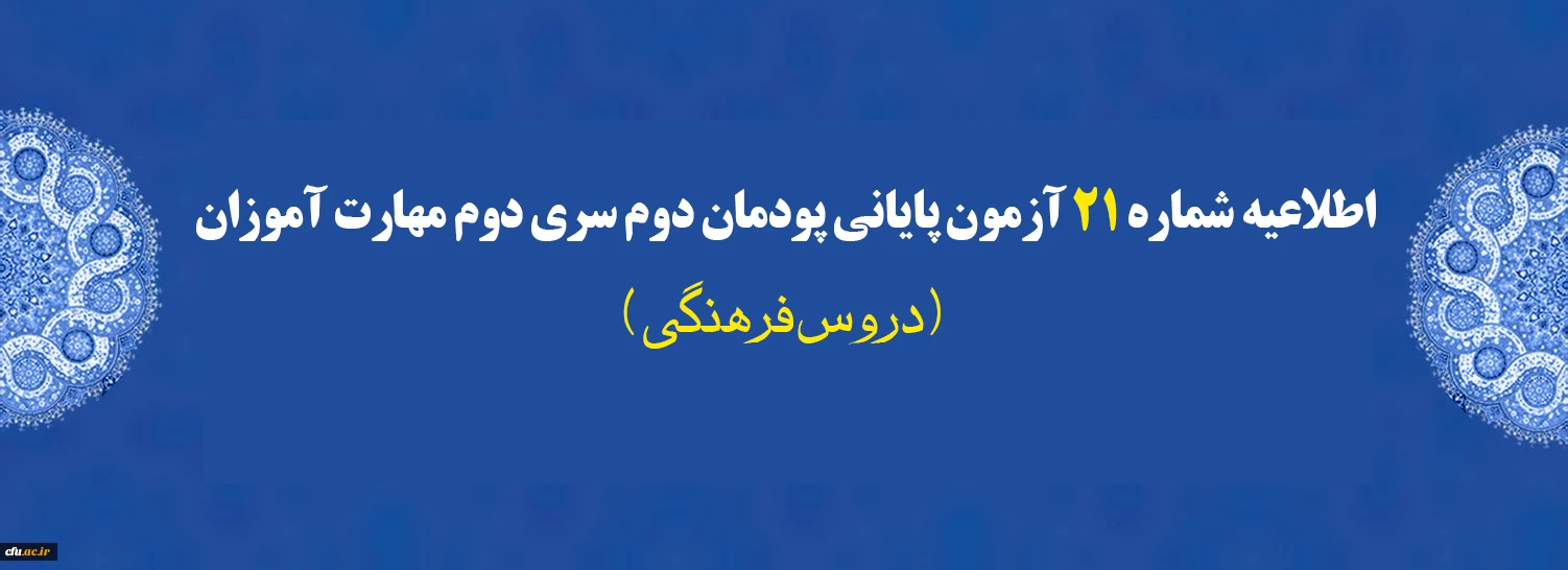 اطلاعیه شماره 21 آزمون پایانی پودمان دوم سری دوم مهارت آموزان (دروس فرهنگی)