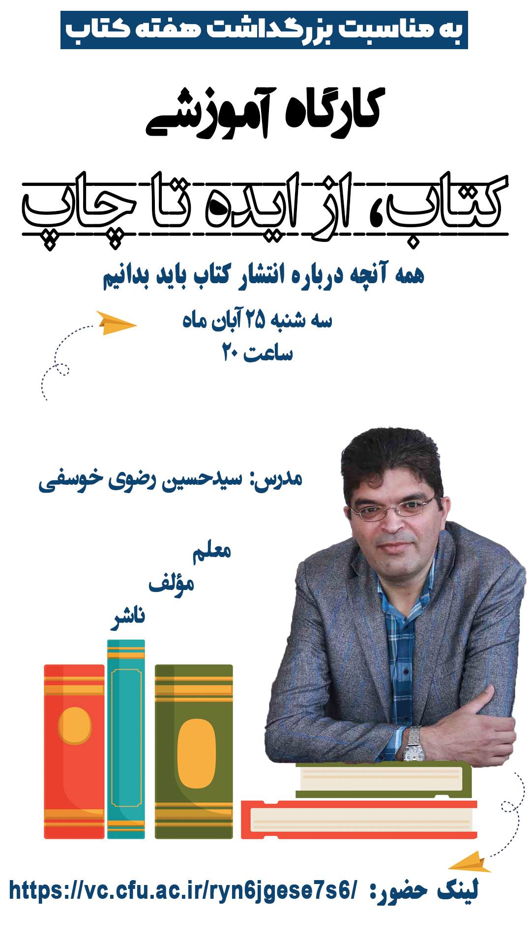 1- کارگاه آموزشی کتاب، از ایده تا چاپ (هرآنچه که درباره انتشار کتاب باید بدانیم)