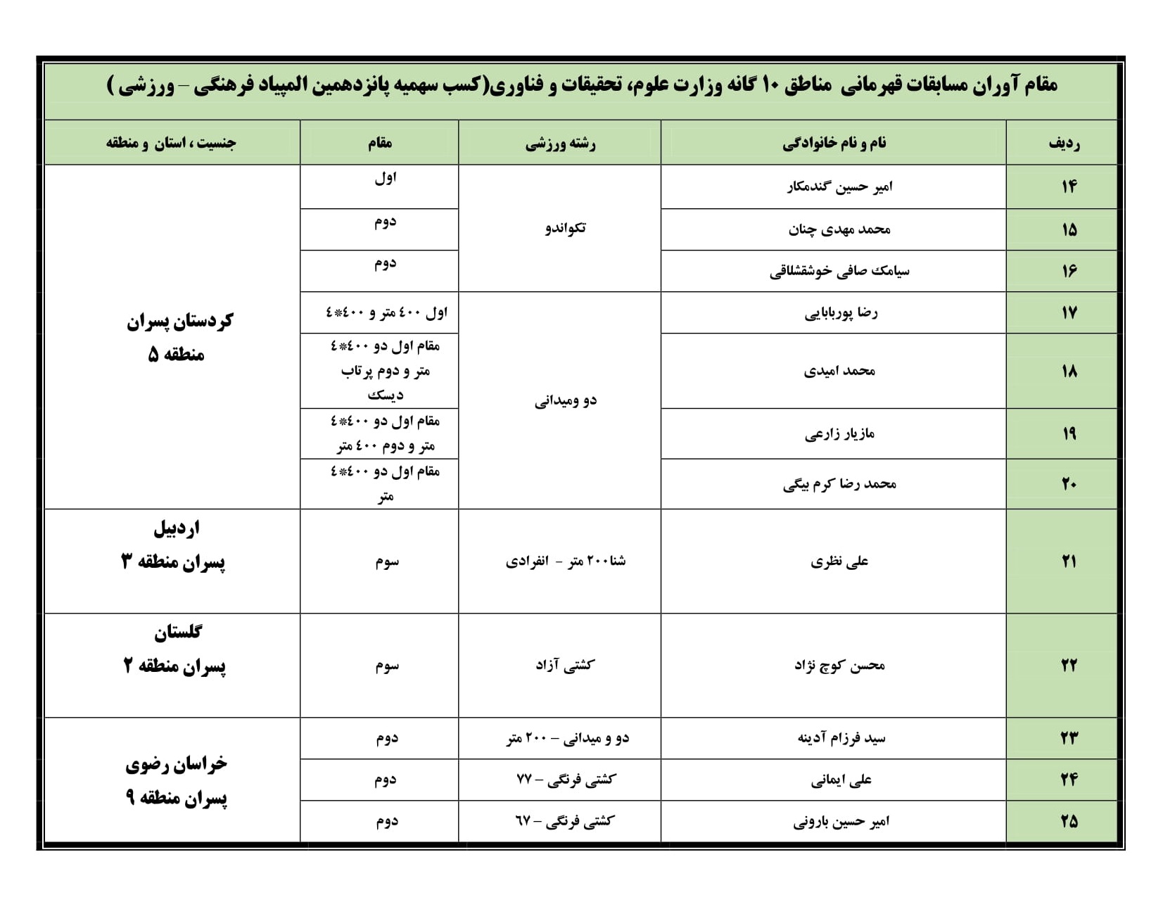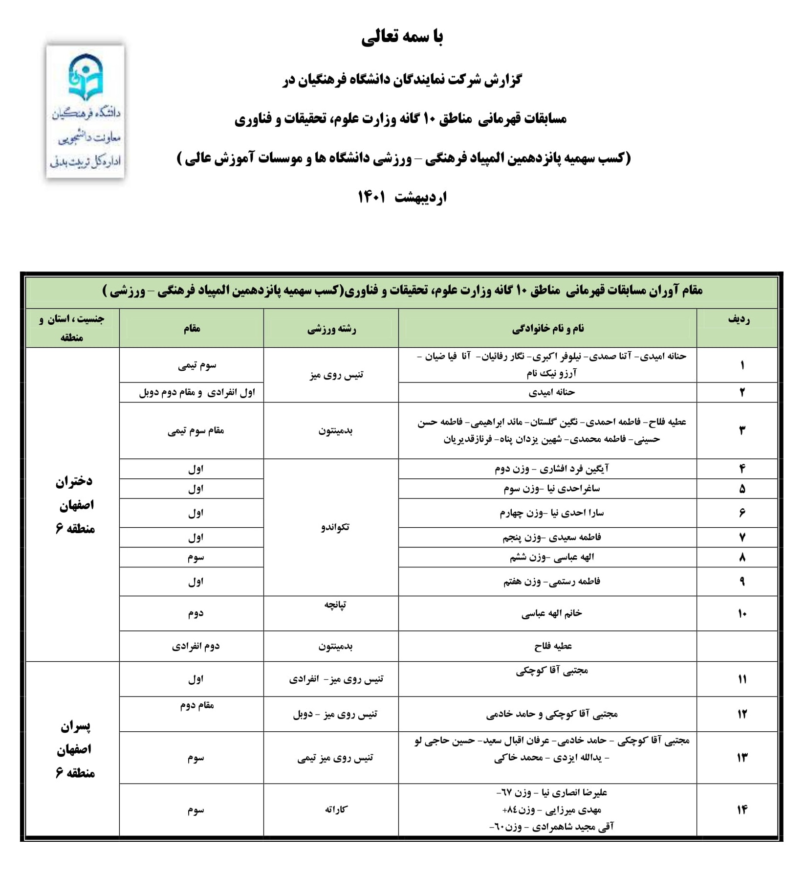درخشش دانشجو معلمان دانشگاه فرهنگیان درمسابقات ورزشی مناطق 10 گانه وزارت علوم، تحقیقات و فناوری
