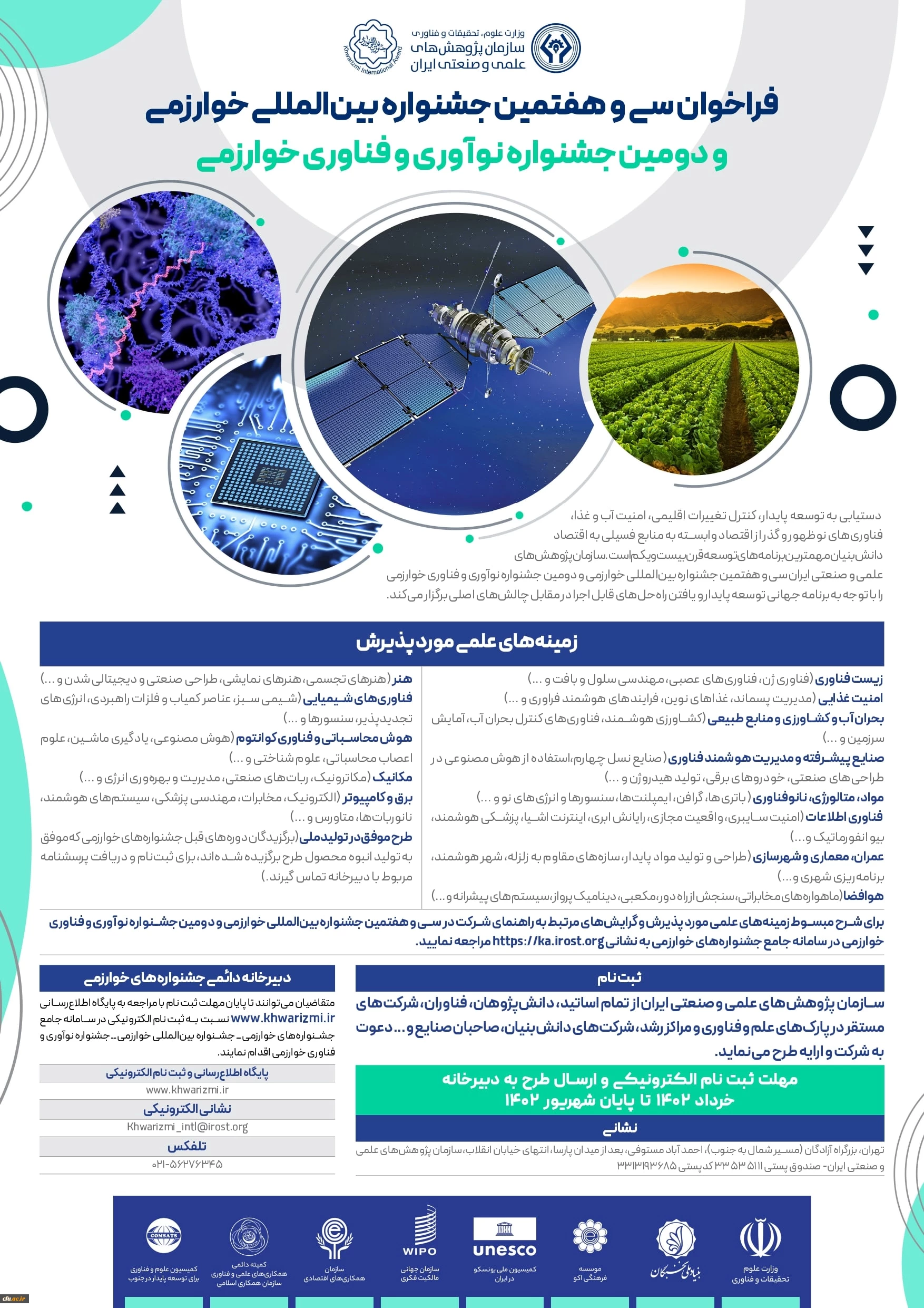فراخوان سی و هفتمین جشنواره بین المللی خوارزمی و دومین جشنواره نوآوری و فناوری خوارزمی