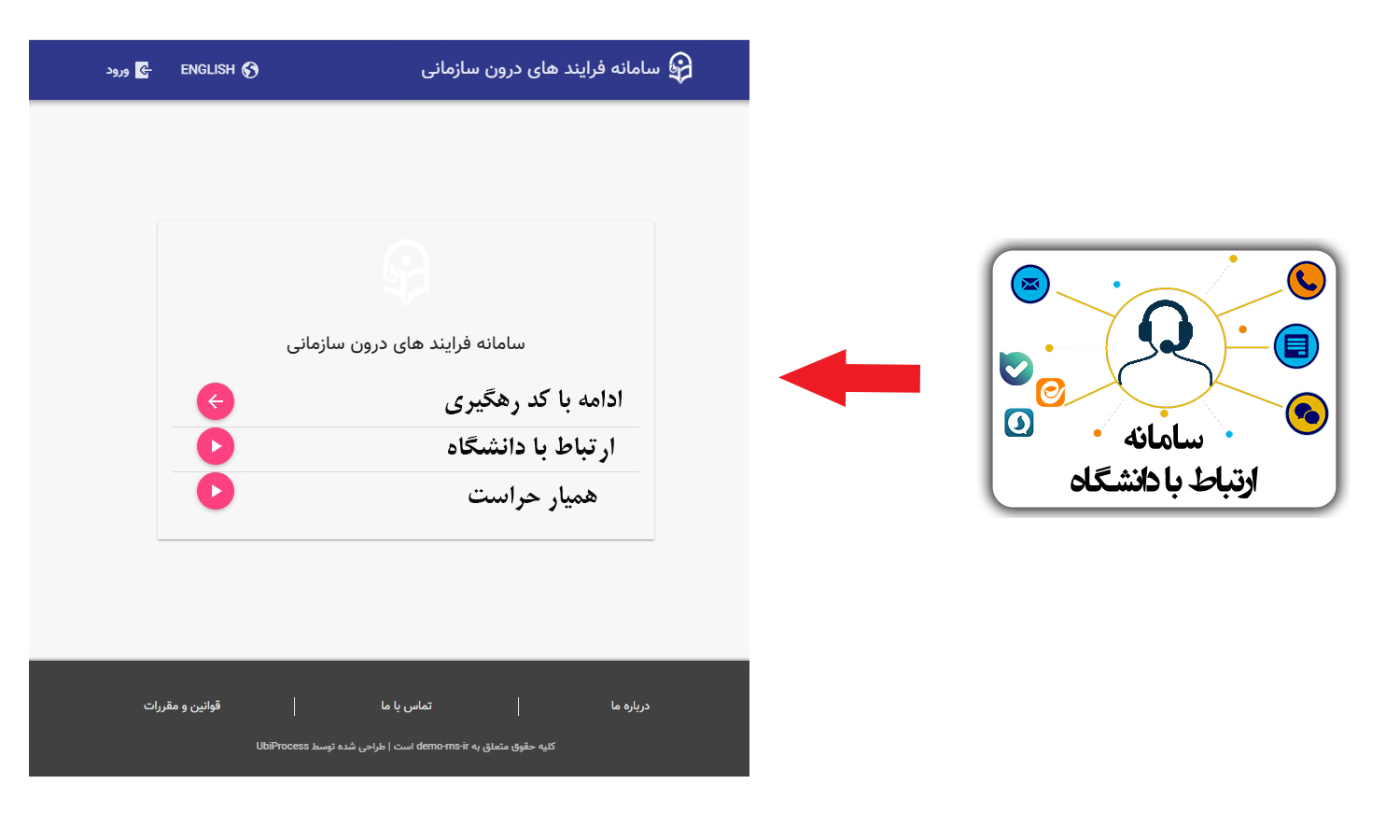 گفتنی است ارتباط با دانشگاه (سامانه فرایند های سازمانی)، خدمات الکترونیکی، پاسخگویی به سوالات متداول، و شماره تماس همکاران دانشگاه در ستاد از خدمات ارائه شده در این سامانه است.