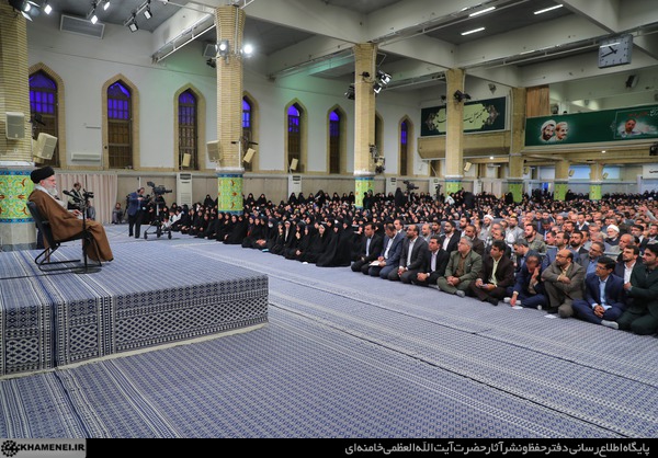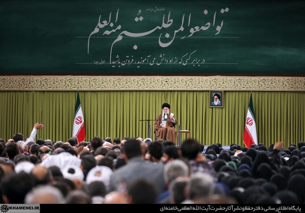 سخنان رهبری آغاز میشود: «من لم یشکر المخلوق لم یشکر الخالق؛ همه باید از معلمین شکرگزار باشند. شما هستید که فرزندان ما را تربیت میکنید، تعلیم میدهید و آنها را برای زندگی دوران عمرشان آماده میکنید.»