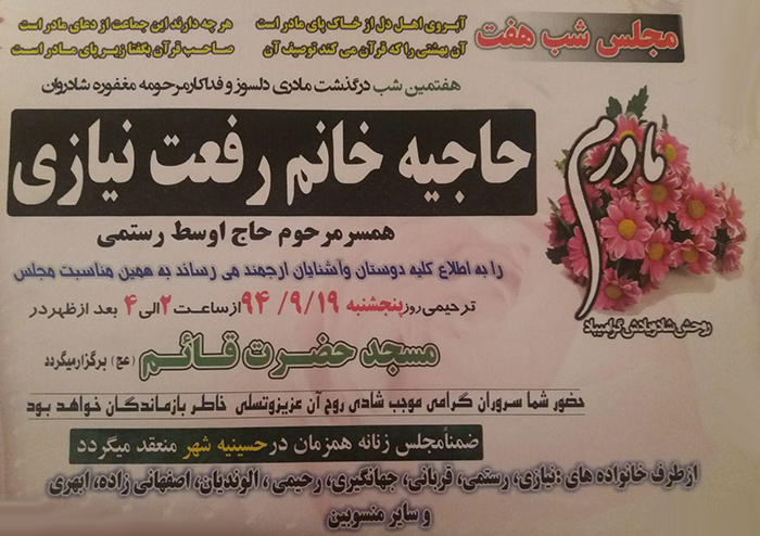 با کمال تأثر و تأسف، مطلع شدیم همکار ارجمندمان، سرکار خانم رستمی، همکار محترم پژوهش و فناوری سازمان مرکزی دانشگاه فرهنگیان، در غم ارتحال مادر گرامیشان به سوگ نشسته اند.