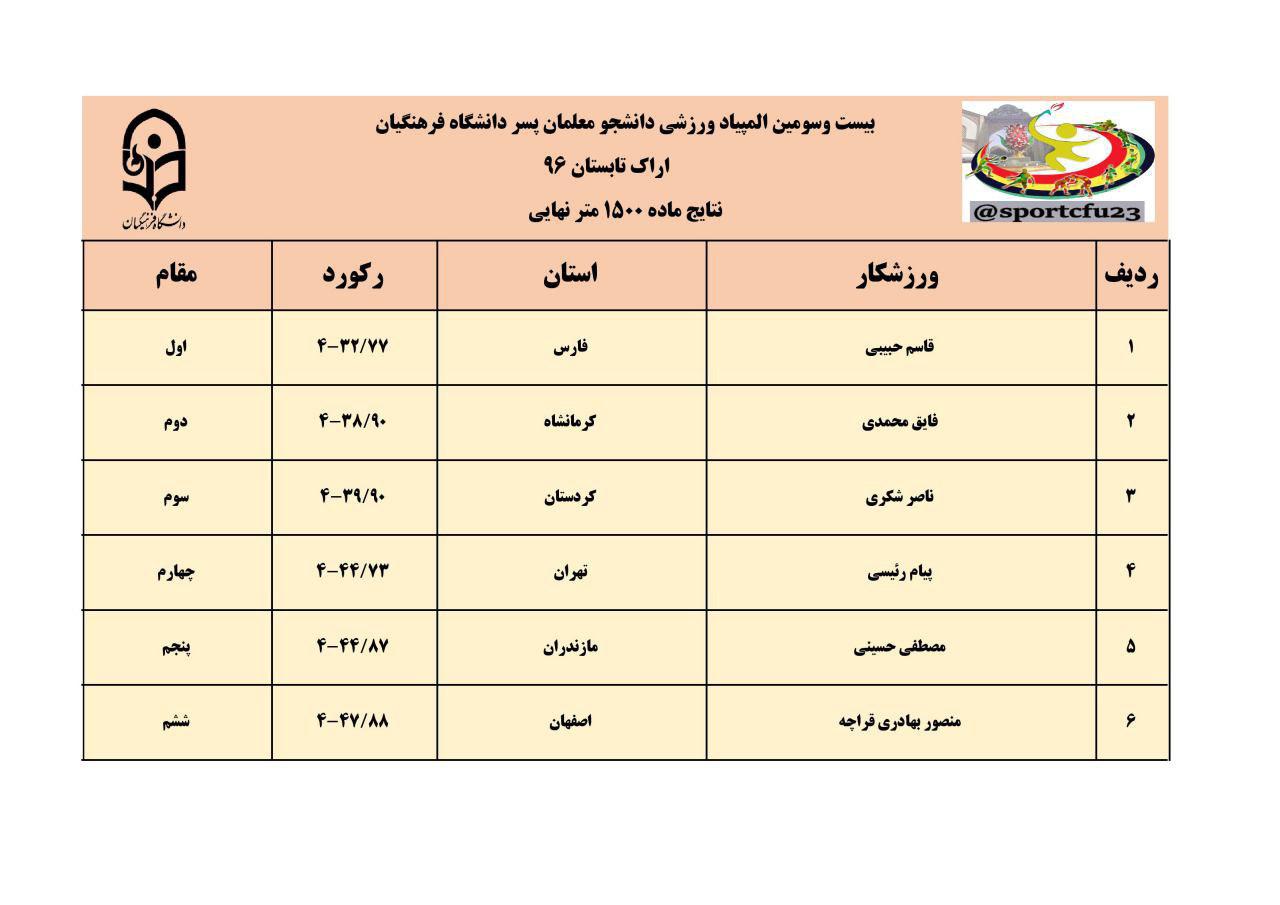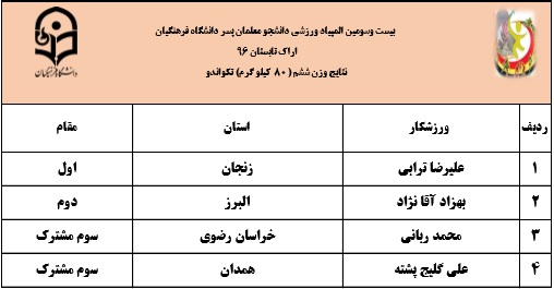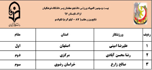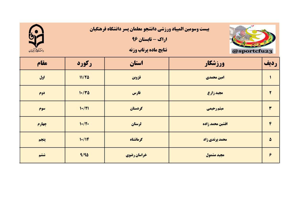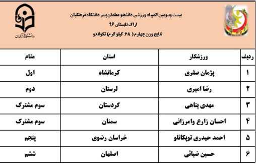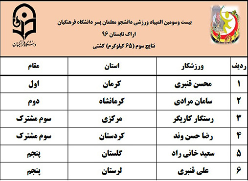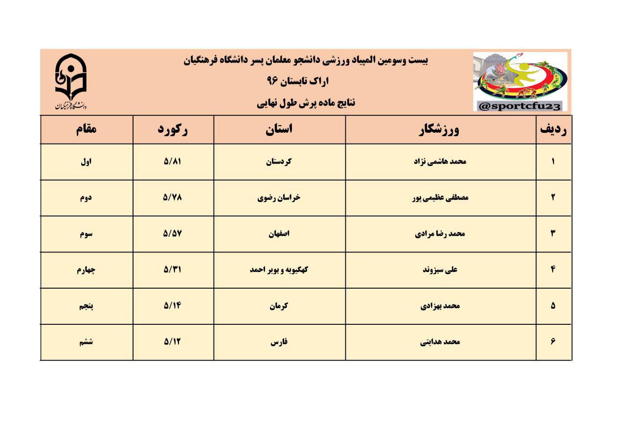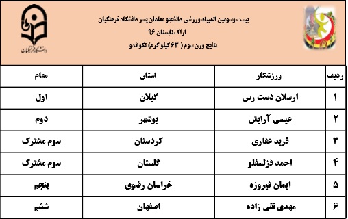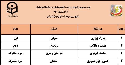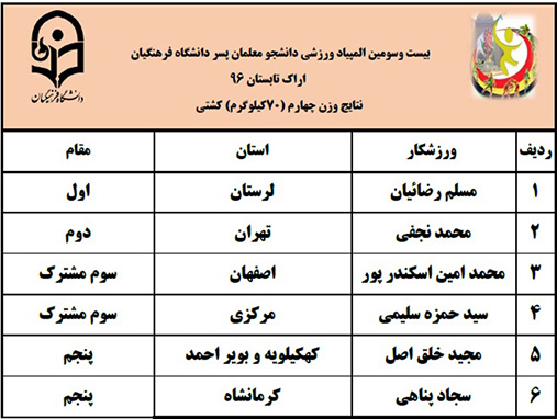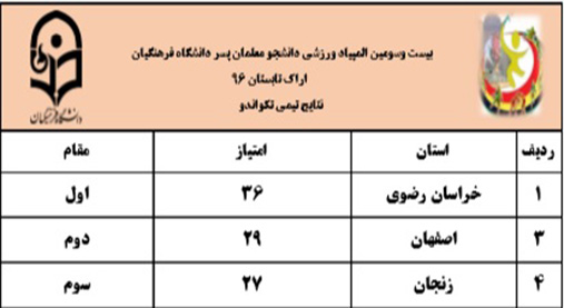 نتایج سه رشته ی دو و میدانی، کشتی و تکواندو در رقابت های المپیاد ورزشی دانشجو معلمان پسر