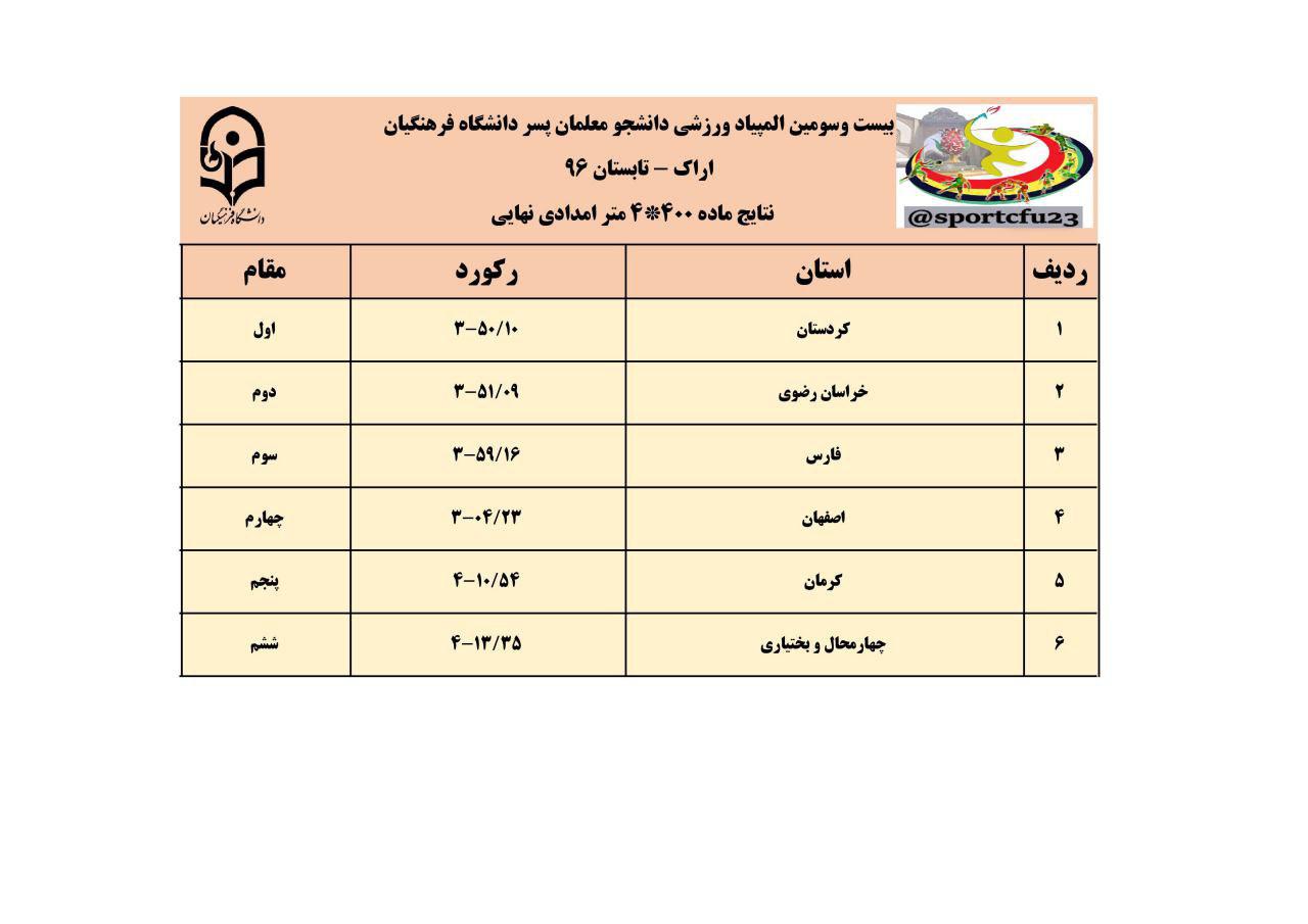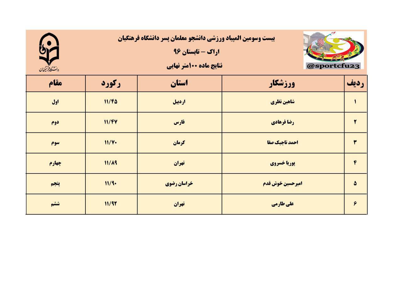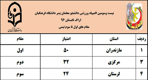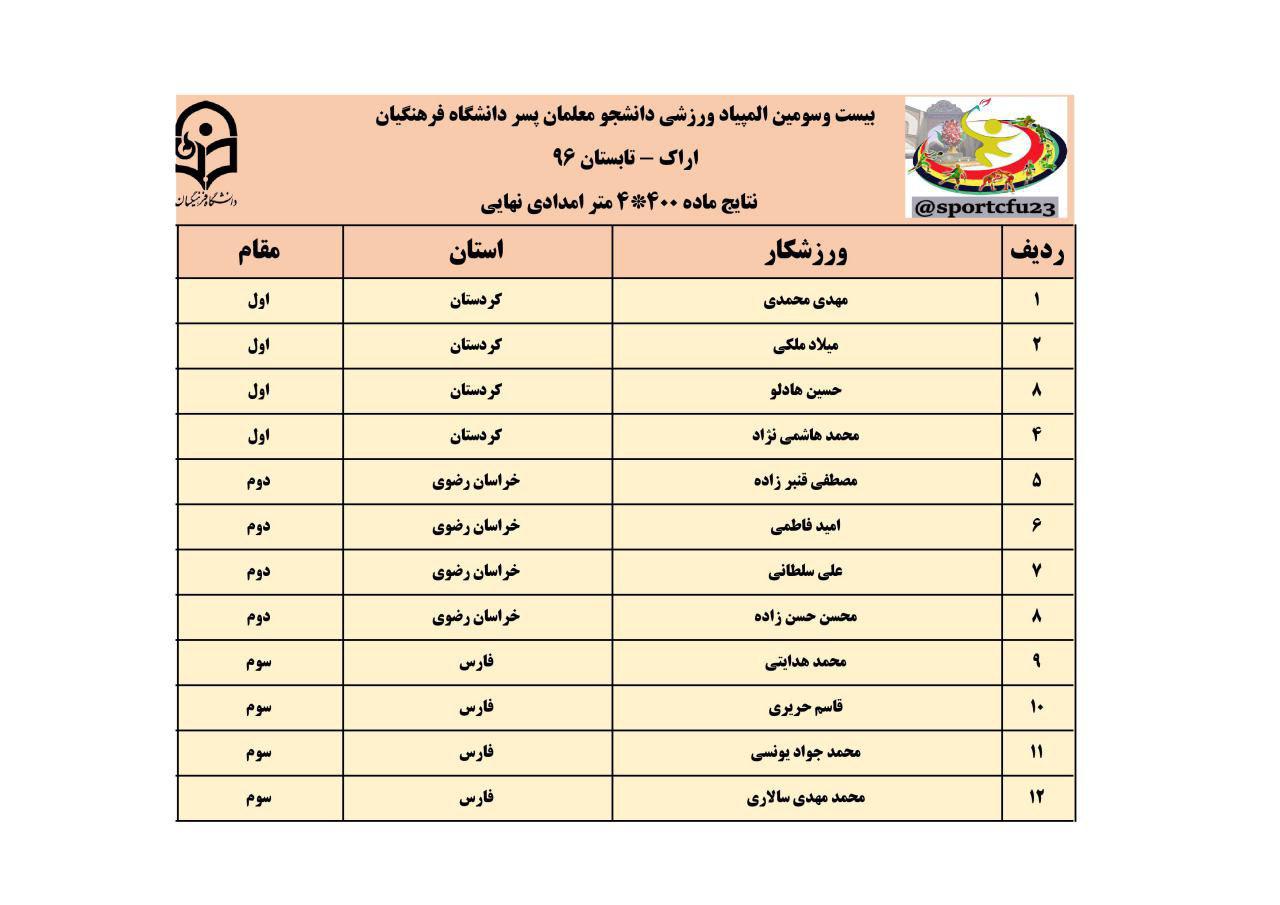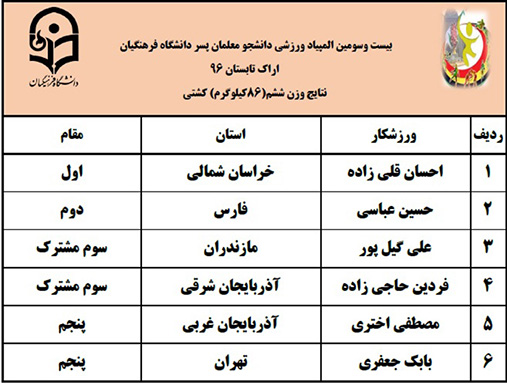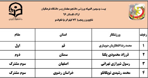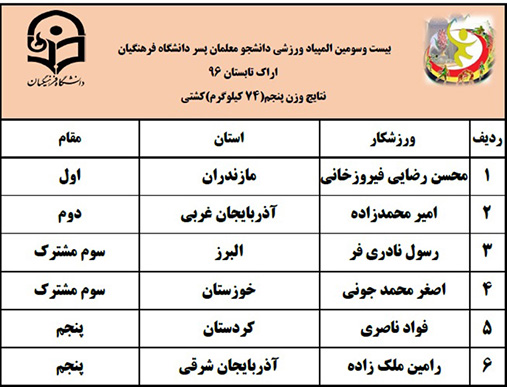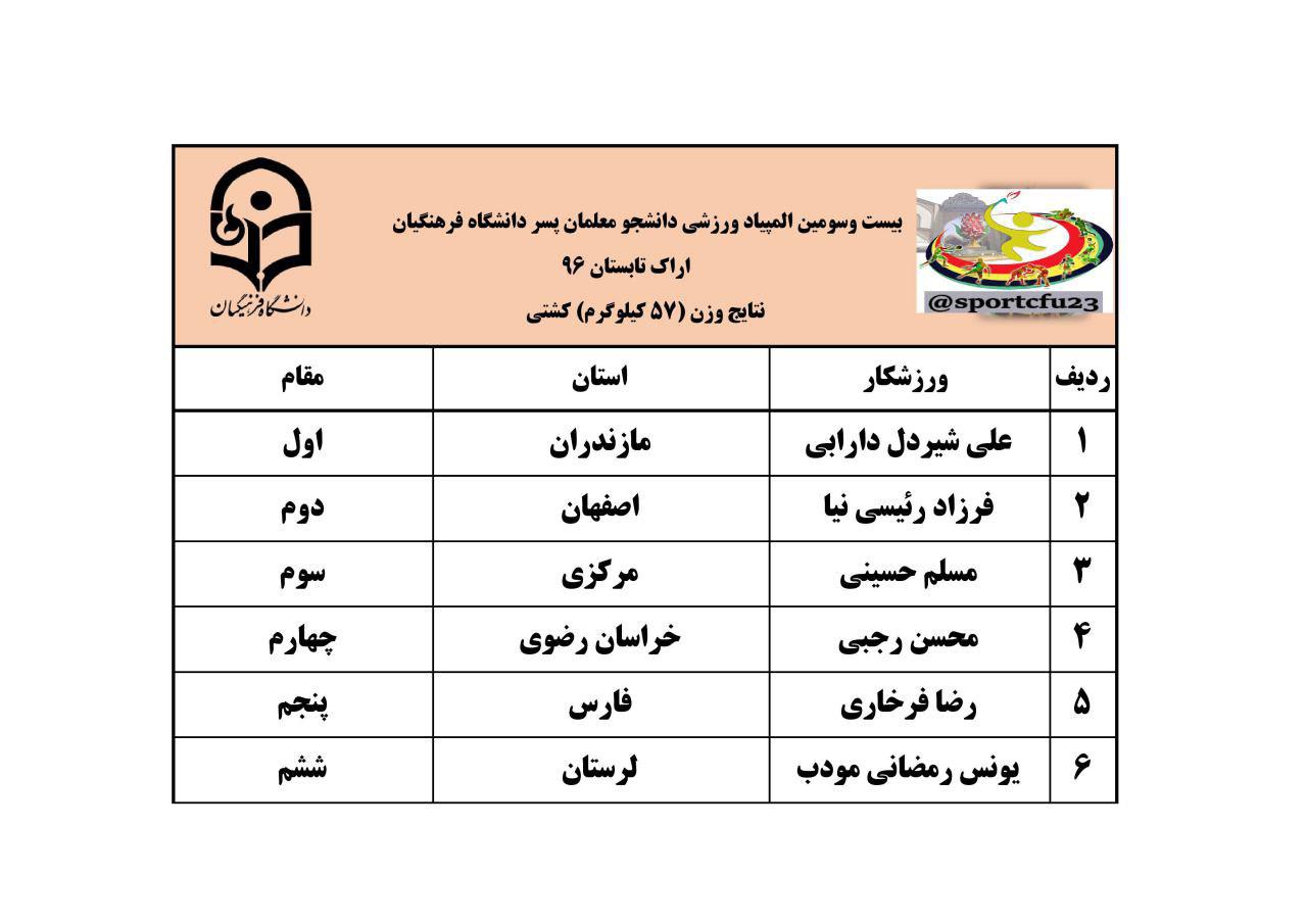 نتایج سه رشته ی دو و میدانی، کشتی و تکواندو در رقابت های المپیاد ورزشی دانشجو معلمان پسر