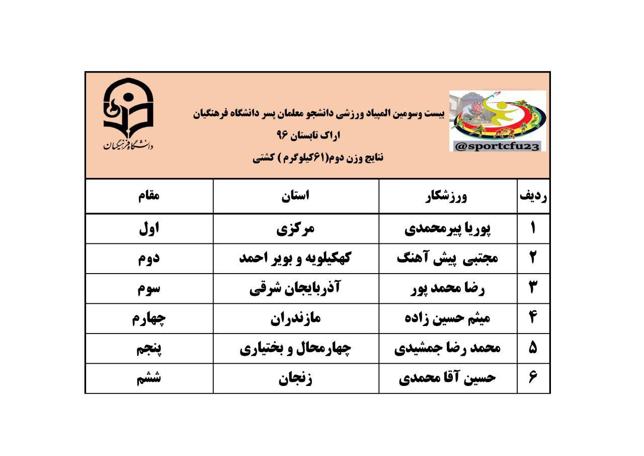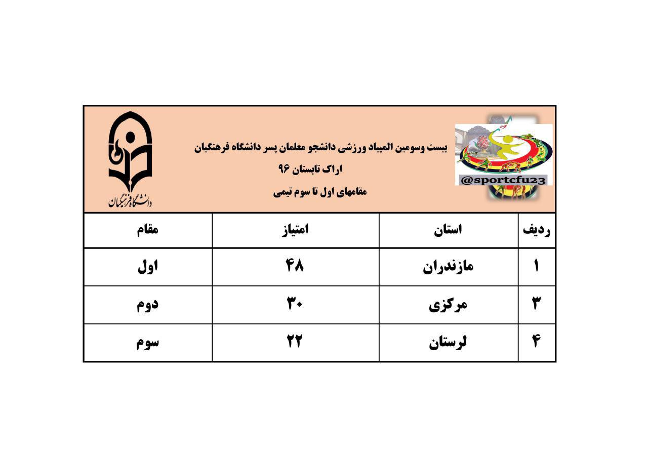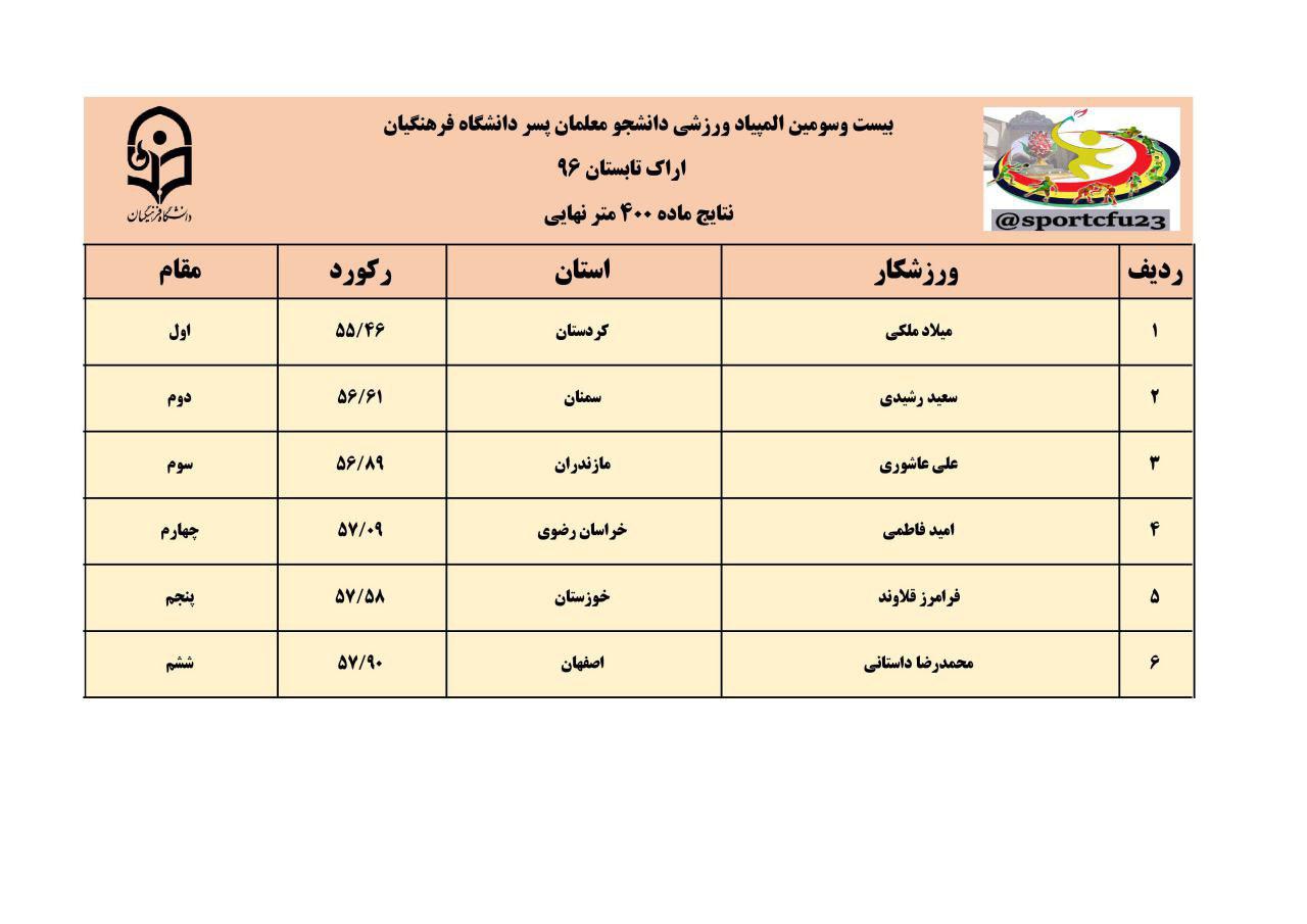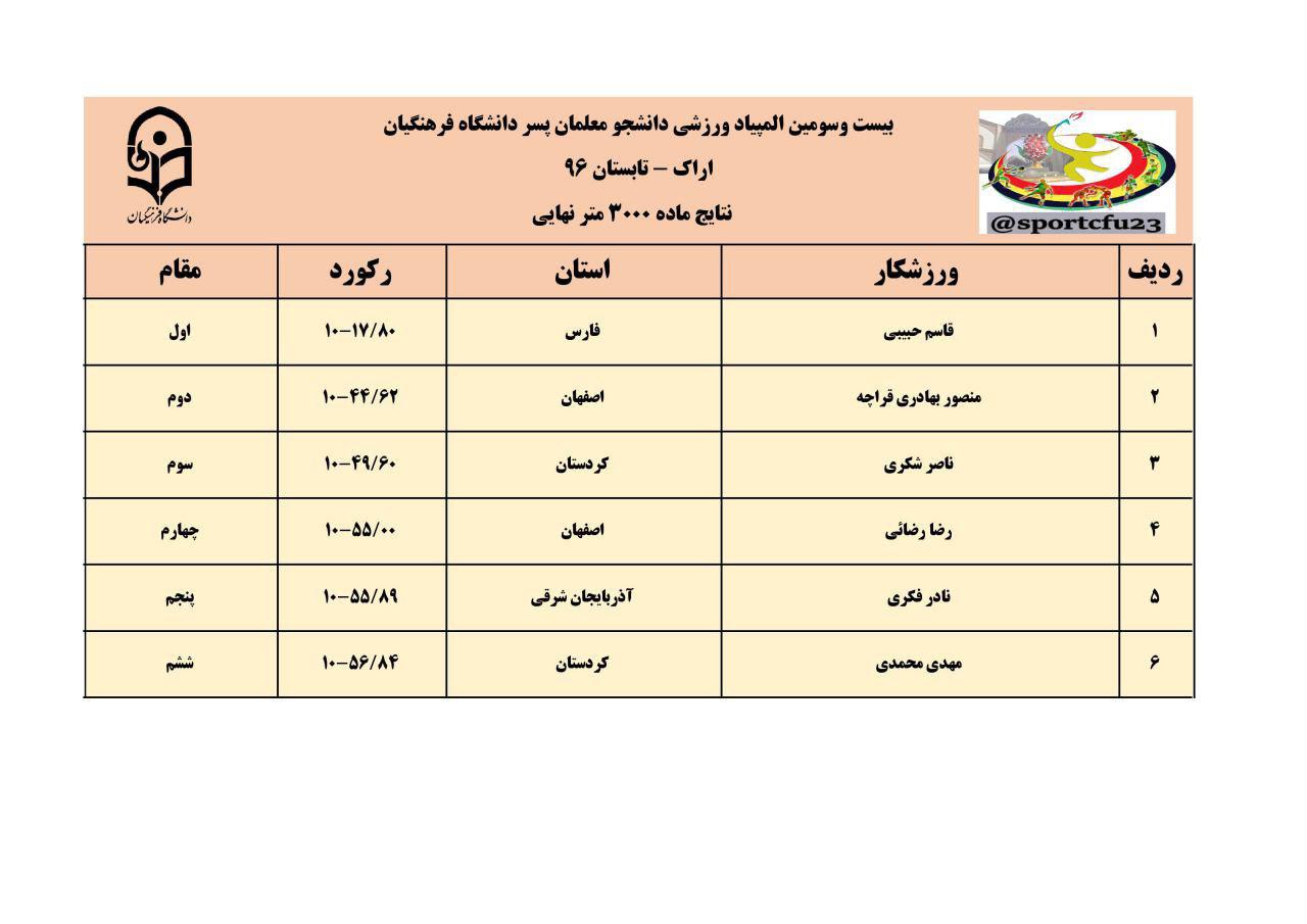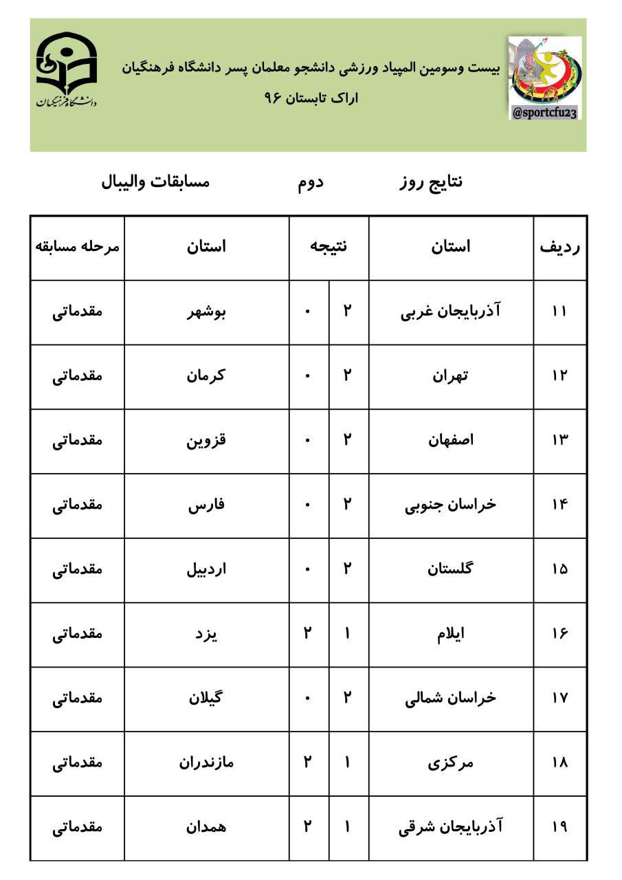 نتایج سه رشته ی دو و میدانی، کشتی و تکواندو در رقابت های المپیاد ورزشی دانشجو معلمان پسر