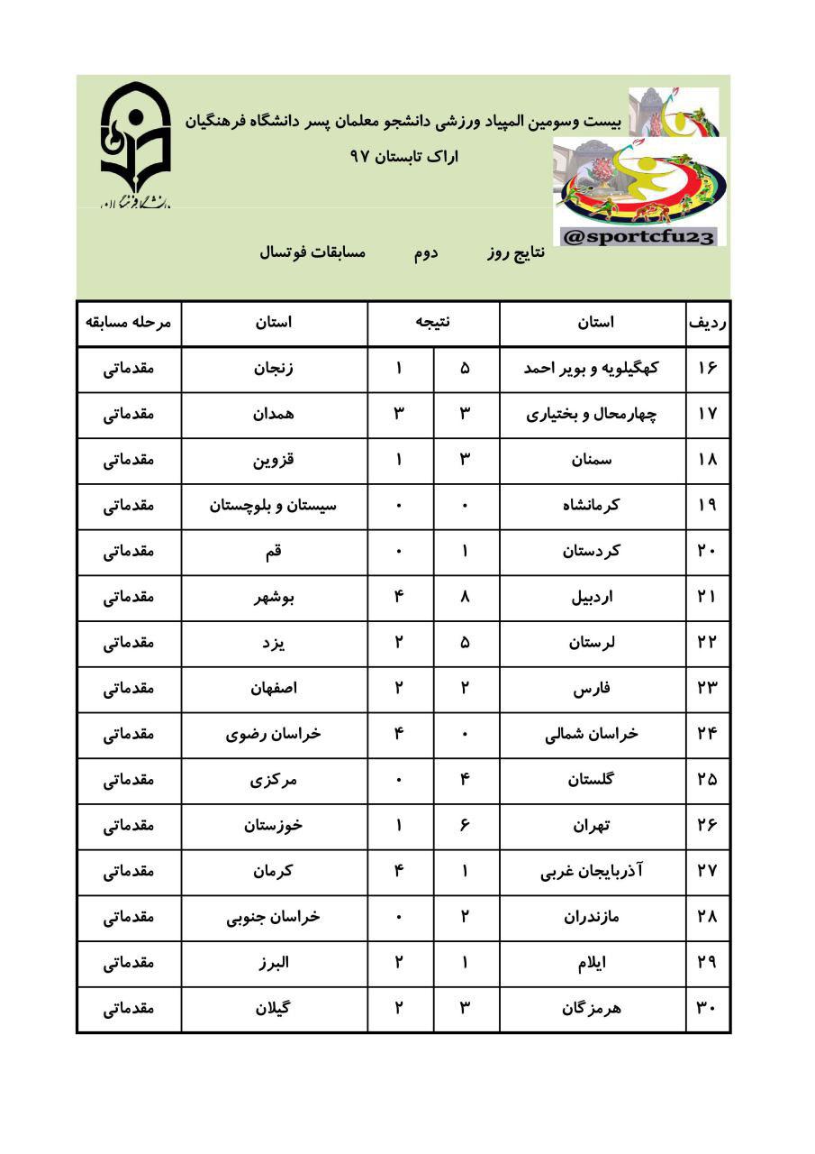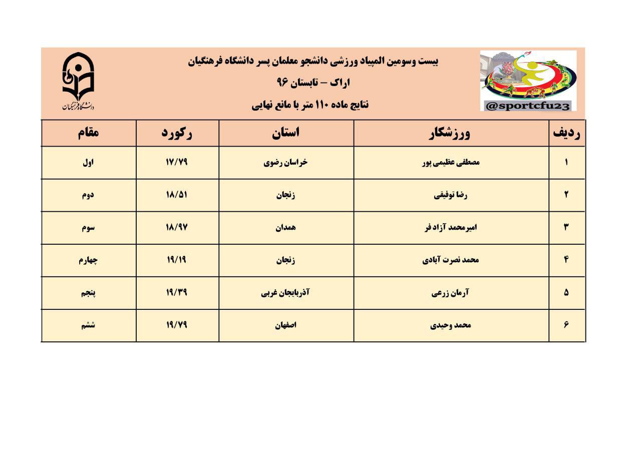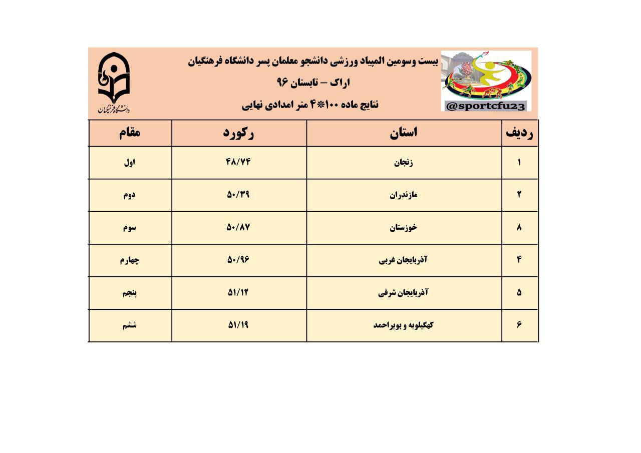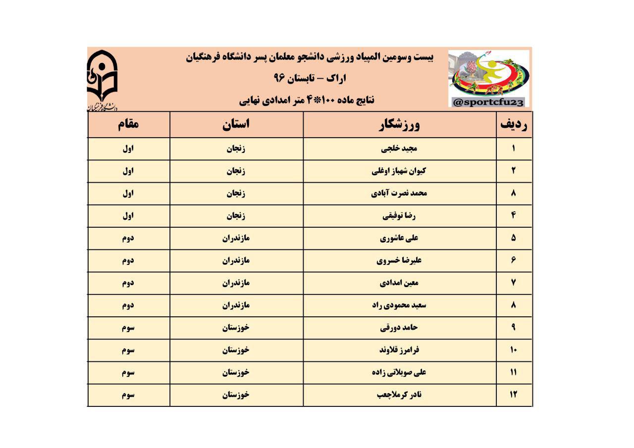 نتایج سه رشته ی دو و میدانی، کشتی و تکواندو در رقابت های المپیاد ورزشی دانشجو معلمان پسر
