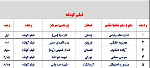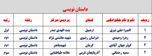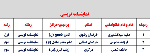 اعلام نتایج بیست و هفتمین جشنواره فرهنگی واجتماعی دانشجومعلمان دختر