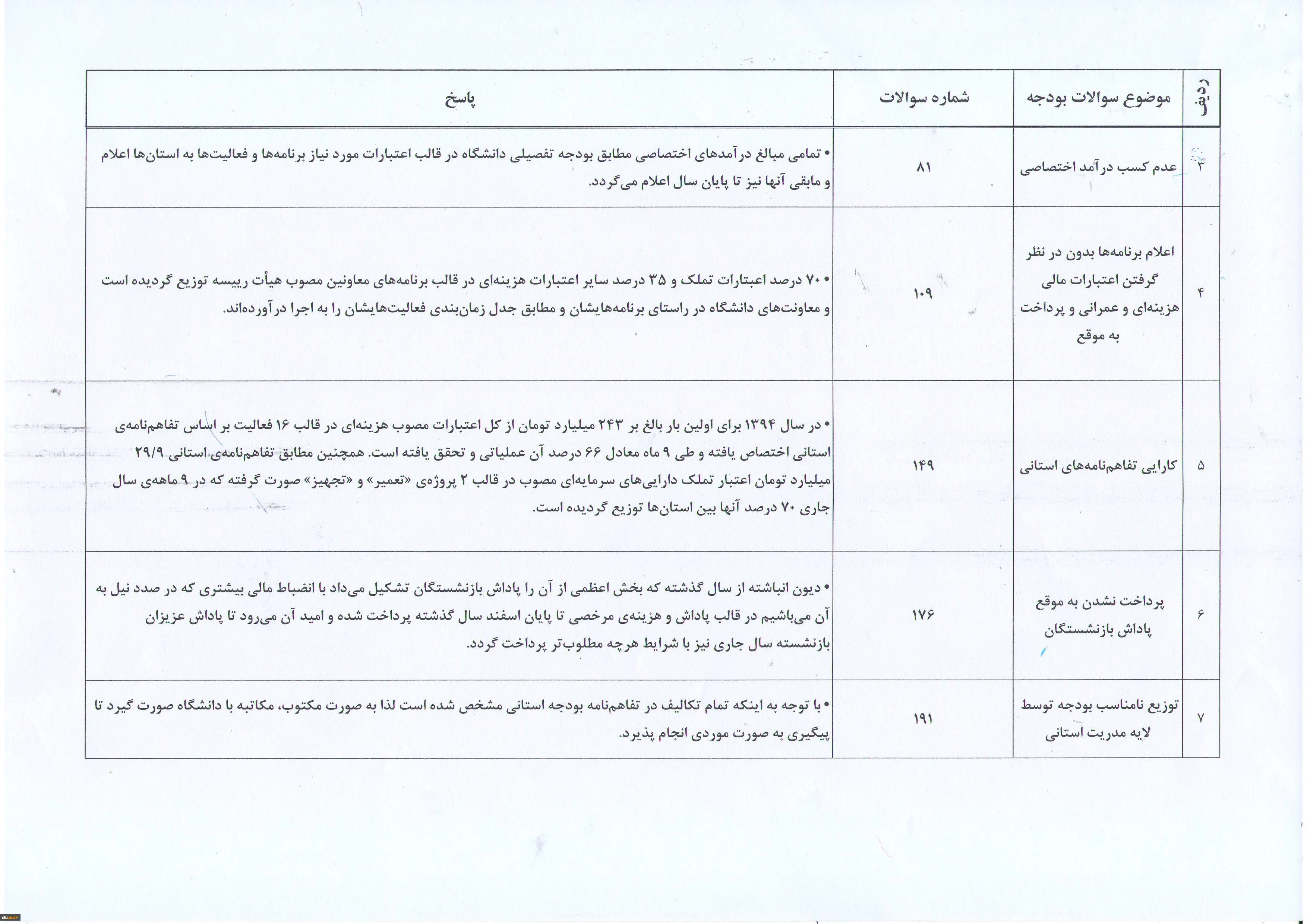 نمایه کلی پاسخ های مشکلات و مسائل ارائه شده به صورت مکتوب از سوی معاونان توسعه منابع و امور دانشجویی پردیسهای دانشگاهی در حوزه دفتر طرح و برنامه و بودجه (دوره آموزشی مورخ هفتم و هشتم آذر ماه سال 94)
