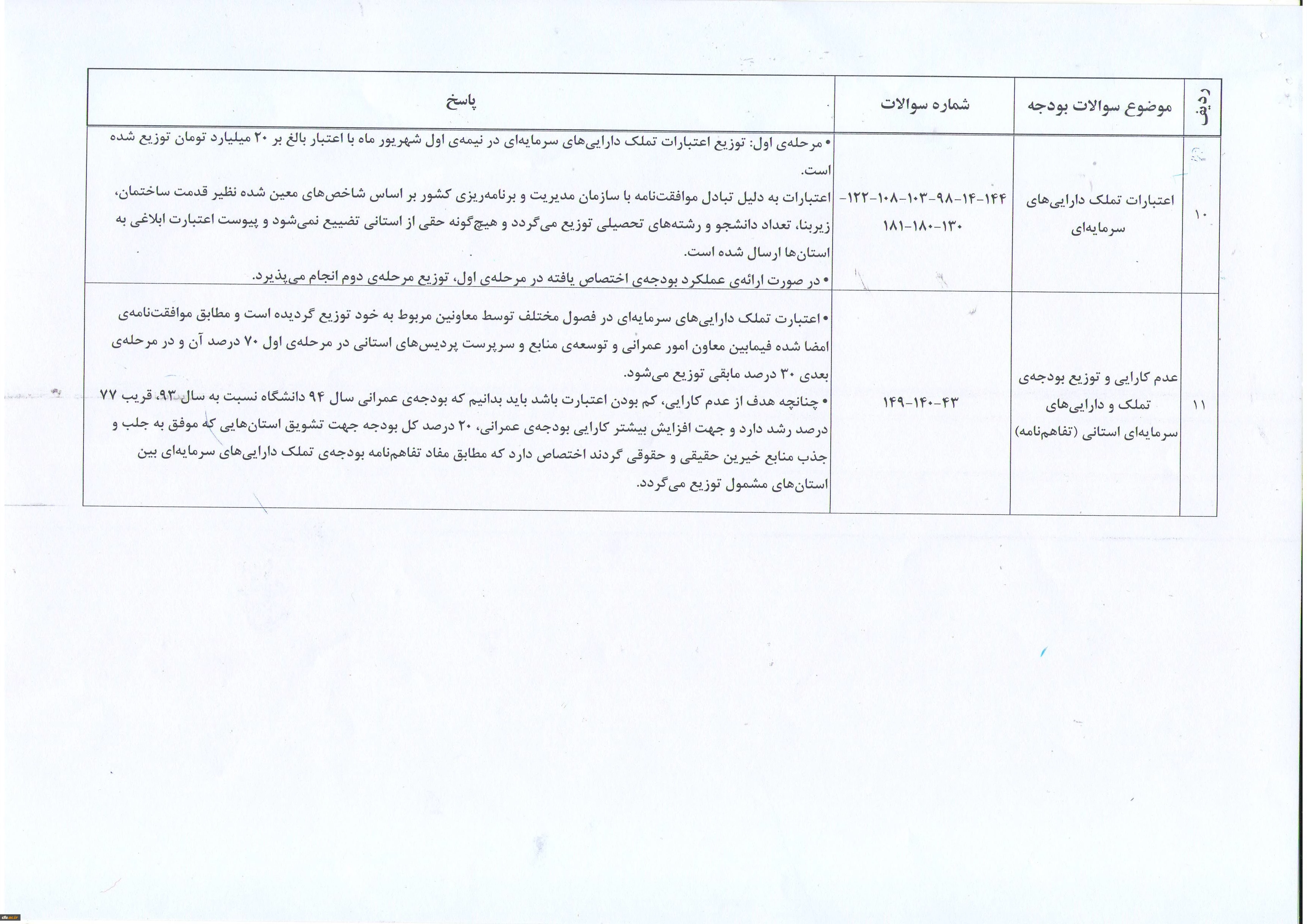 نمایه کلی پاسخ های مشکلات و مسائل ارائه شده به صورت مکتوب از سوی معاونان توسعه منابع و امور دانشجویی پردیسهای دانشگاهی در حوزه دفتر طرح و برنامه و بودجه (دوره آموزشی مورخ هفتم و هشتم آذر ماه سال 94)