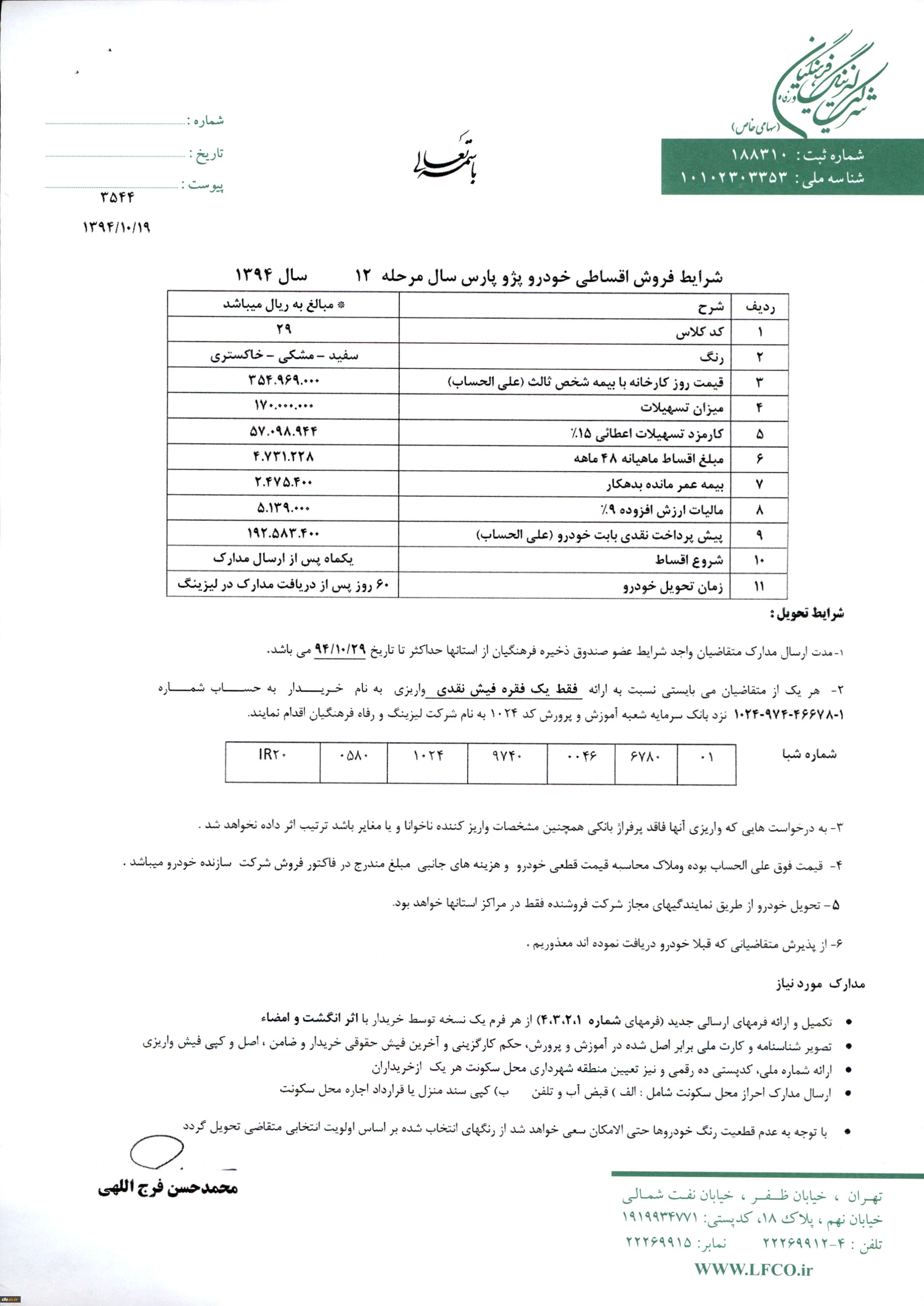 مرحله دوازدهم اعطای تسهیلات خرید خودرو ( لیزینگ فرهنگیان) 2