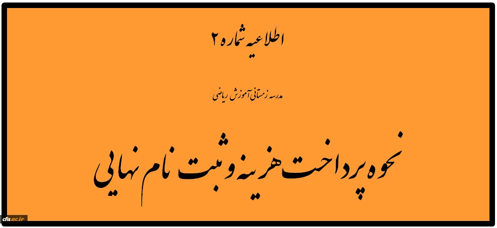 اطلاعیه شماره 2 مدرسه زمستانی آموزش ریاضی نحوه پرداخت هزینه و ثبت نام نهایی 2
