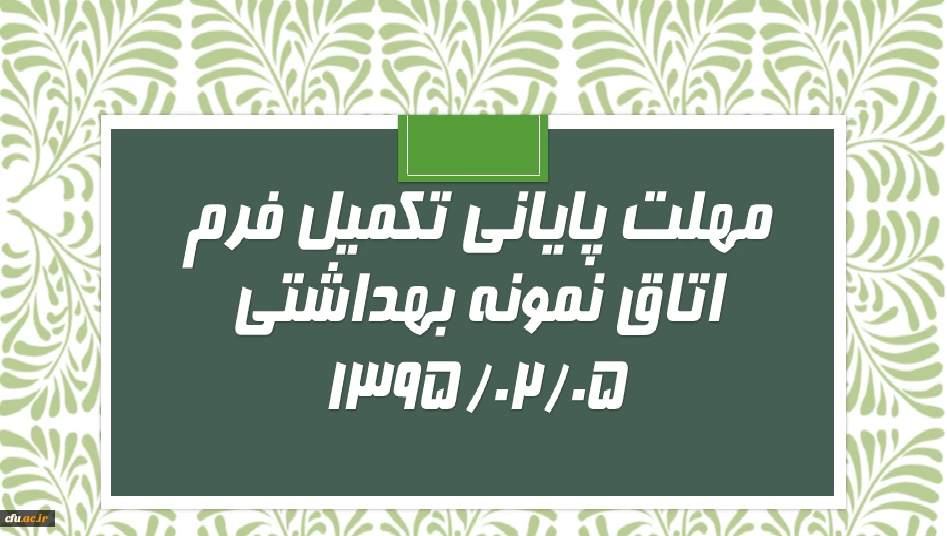 مهلت تکمیل فرم خود ارزیابی اتاق نمونه بهداشتی اعلام شد.