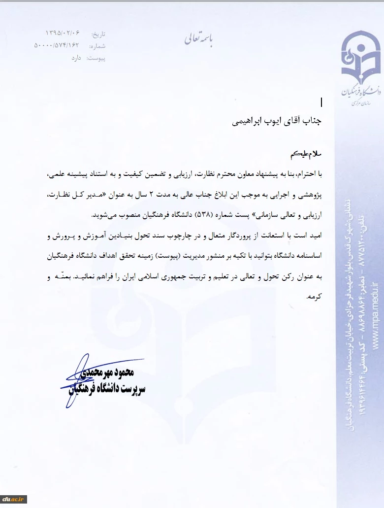 انتصاب آقای ایوب ابراهیمی در سمت مدیرکل نظارت ، ارزیابی و تعالی سازمانی 2