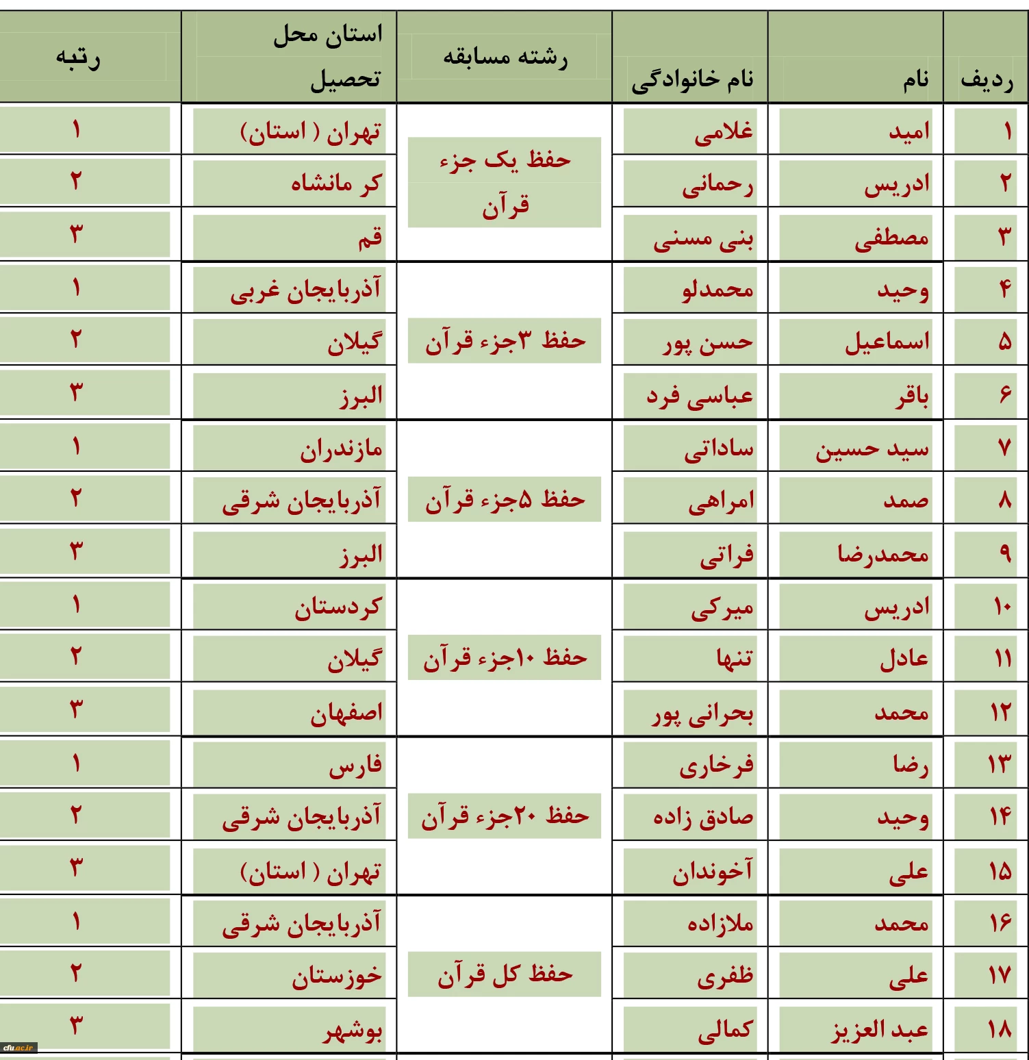 مسابقات شفاهی  جشنواره قرآن وعترت (بخش برادران)