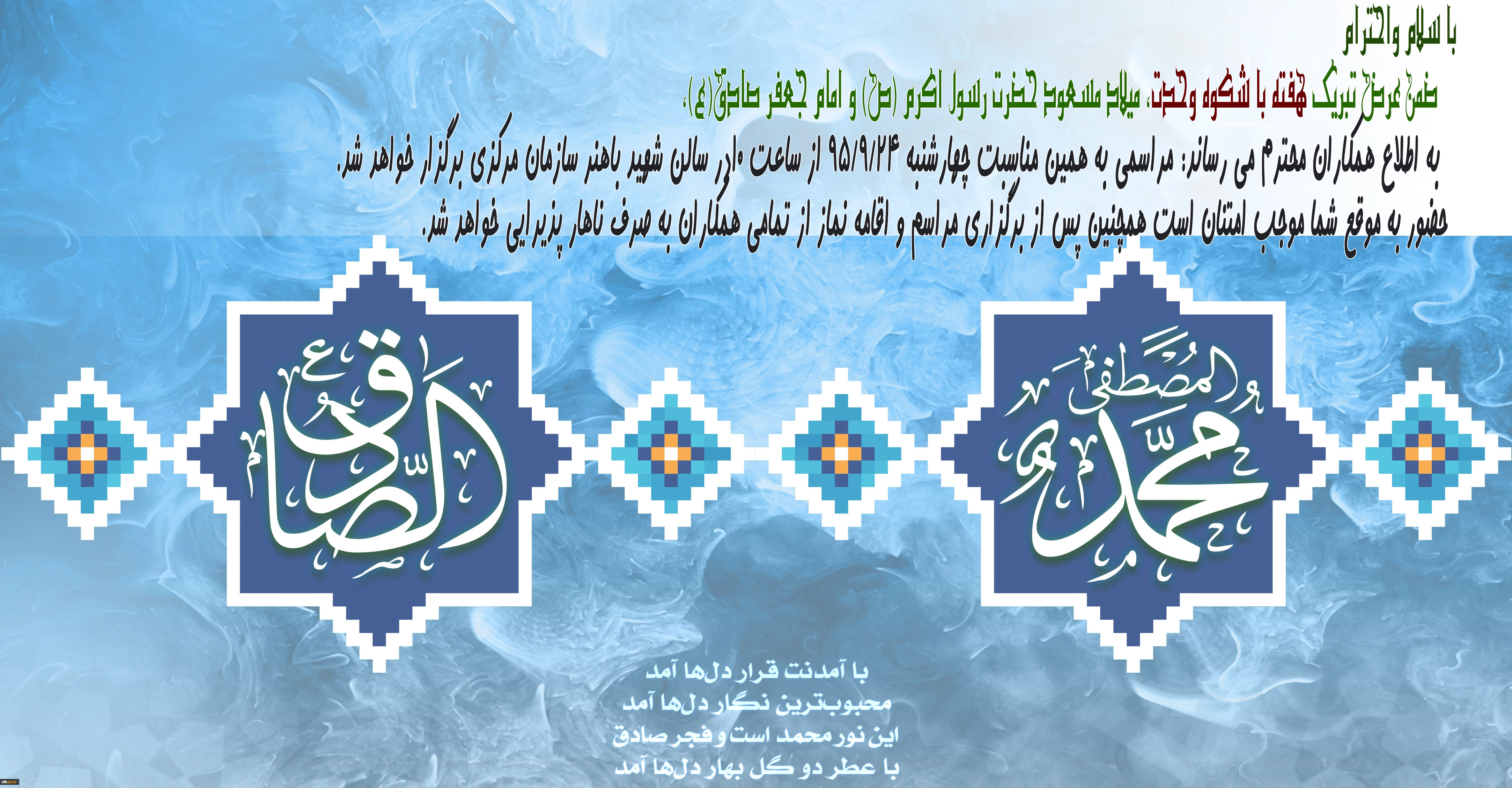 هفته با شکوه وحدت، میلاد مسعود حضرت رسول اکرم (ص) و امام جعفر صادق(ع) مبارک باد