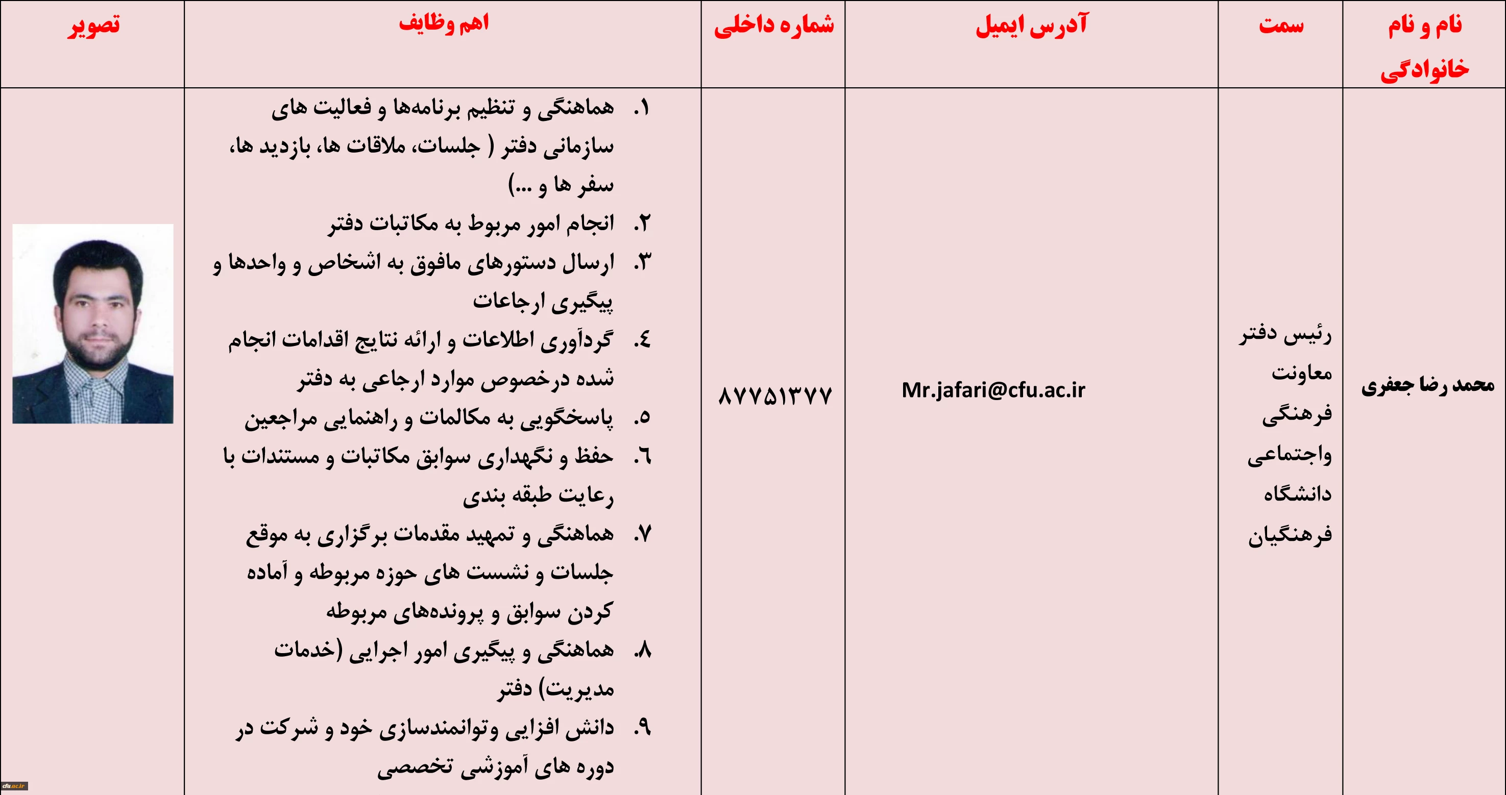 محمد رضا جعفری - رئیس دفتر معاون فرهنگی واجتماعی دانشگاه فرهنگیان