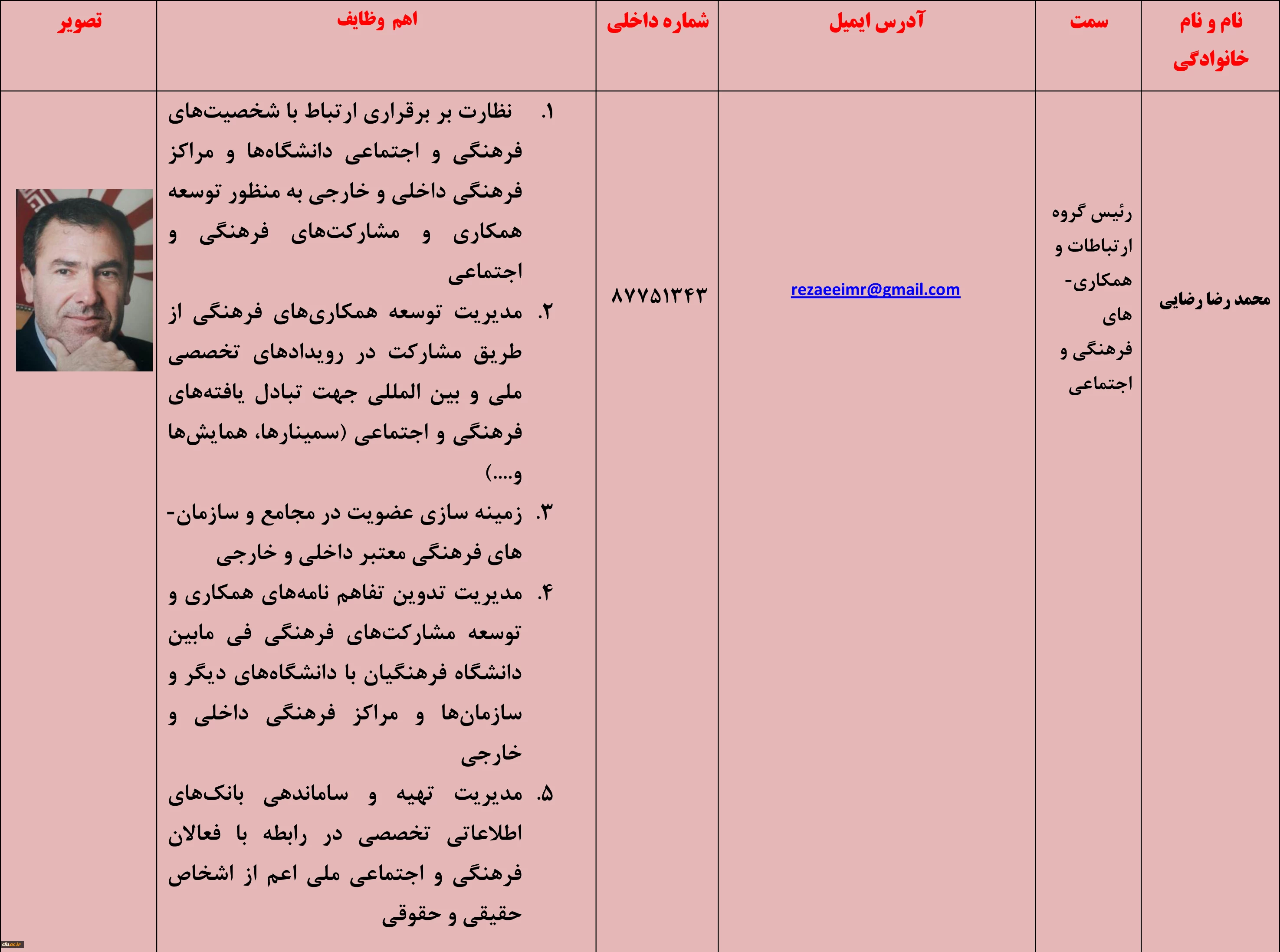 محمد رضا رضایی-رئیس گروه ارتباطات و همکاری های فرهنگی و اجتماعی