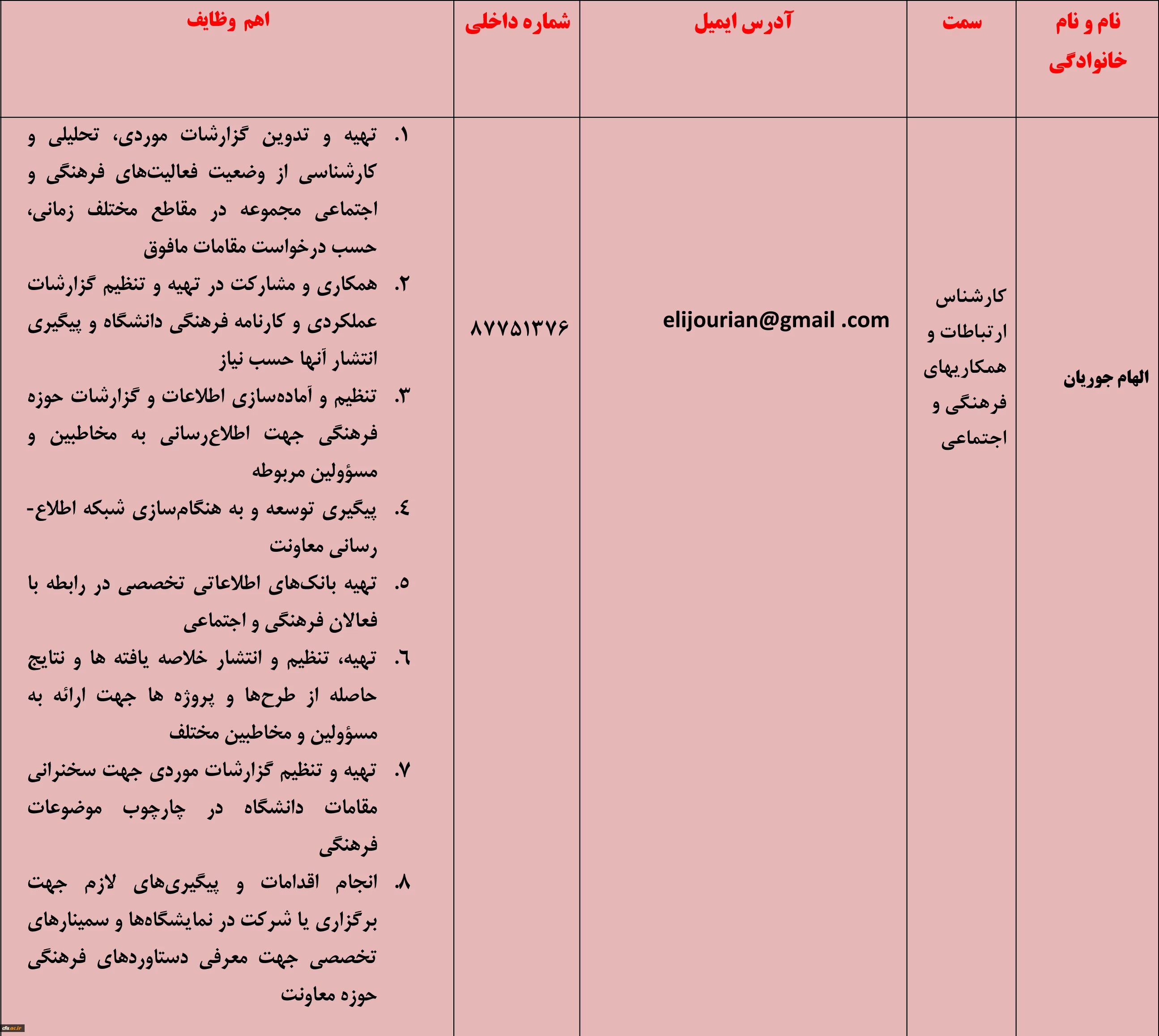 الهام جوریان- کارشناس ارتباطات و همکاری های فرهنگی و اجتماعی