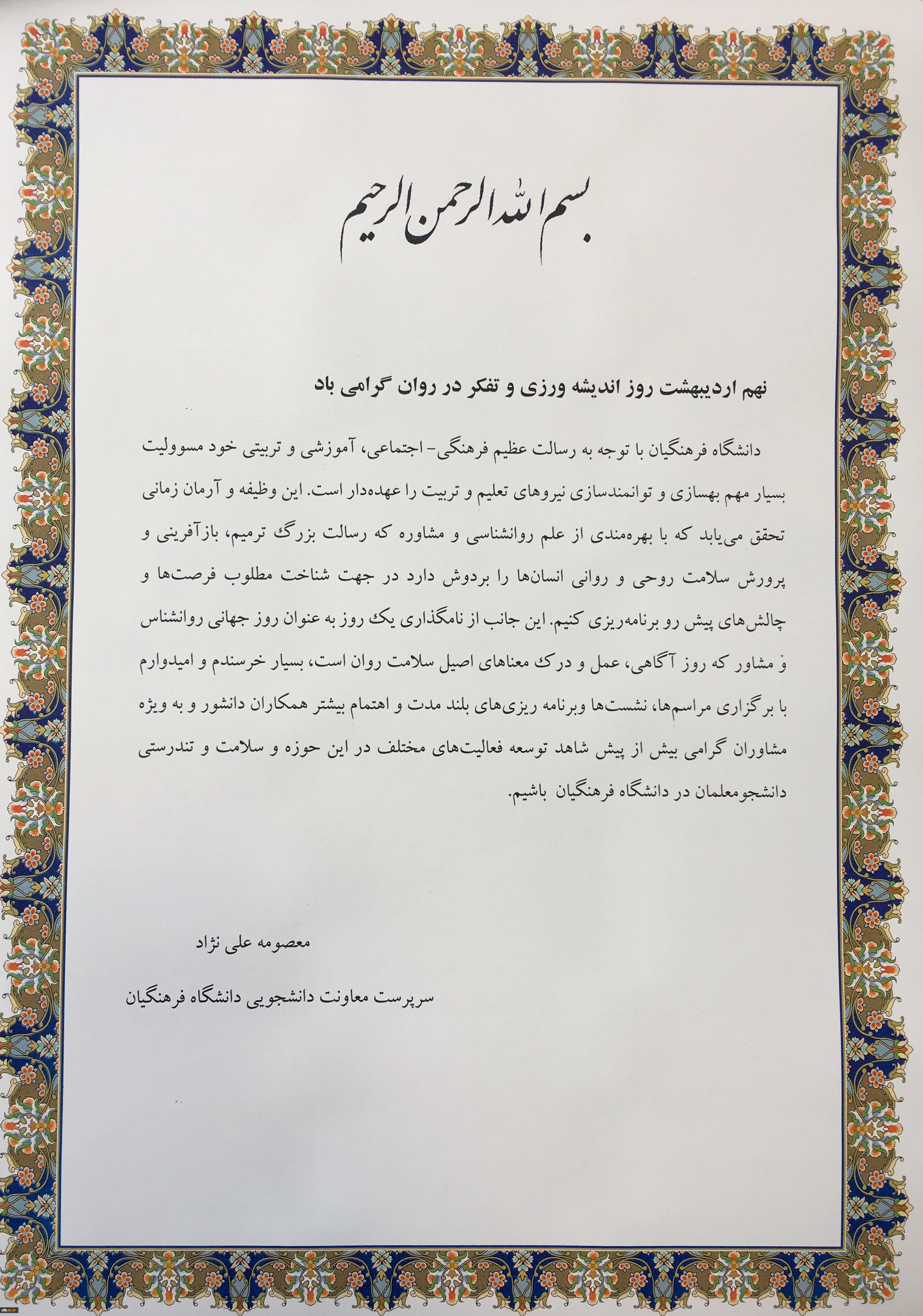 به مناسبت روز جهانی مشاور و روانشناس: پیام تبریک خانم دکتر علی نژاد 2