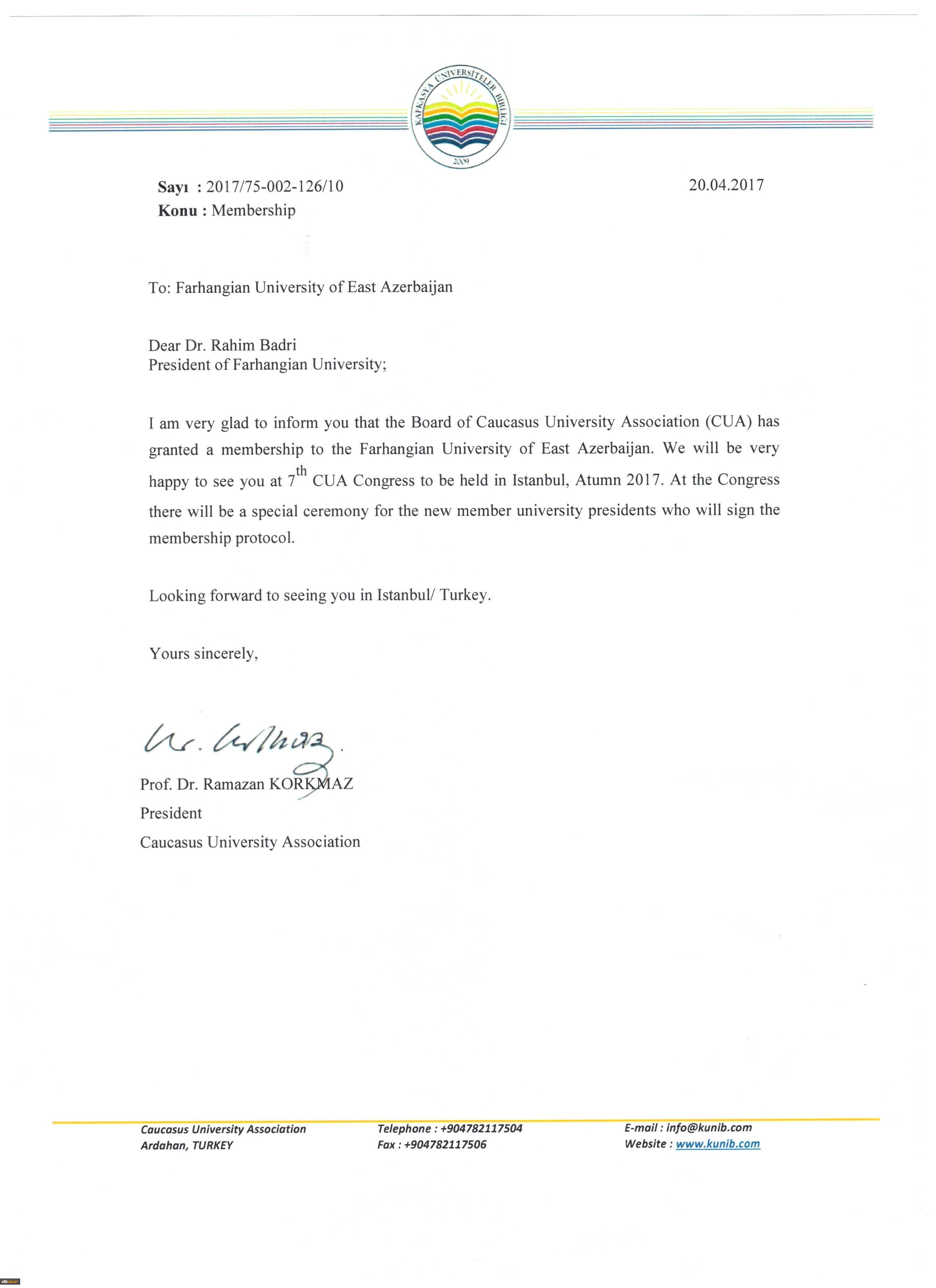 عضویت دانشگاه فرهنگیان آذربایجان شرقی در اتحادیه دانشگاههای منطقه قفقاز(CUA) 3