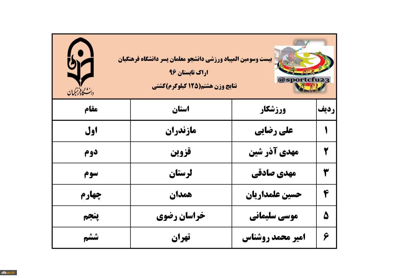 نتایج سه رشته ی دو و میدانی، کشتی و تکواندو در رقابت های المپیاد ورزشی دانشجو معلمان پسر 3