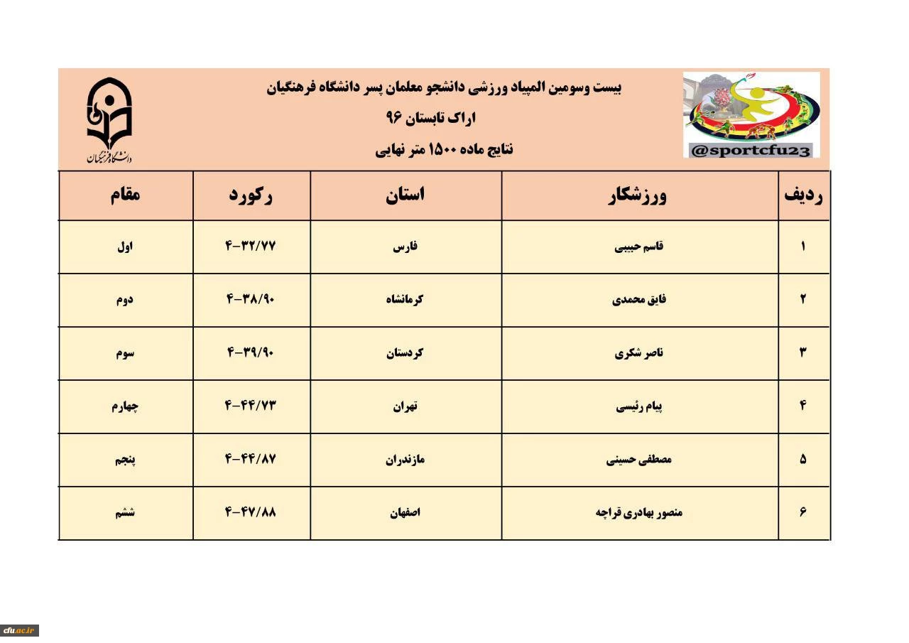 نتایج سه رشته ی دو و میدانی، کشتی و تکواندو در رقابت های المپیاد ورزشی دانشجو معلمان پسر 6
