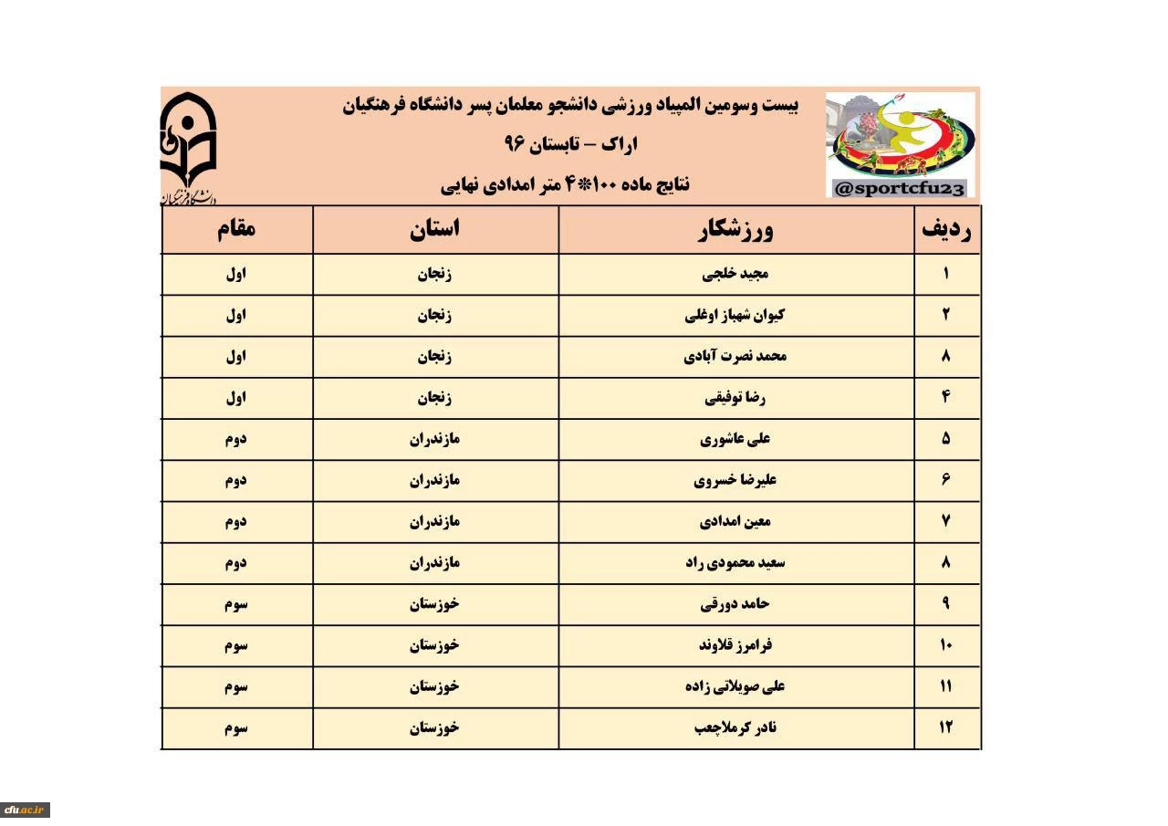 نتایج سه رشته ی دو و میدانی، کشتی و تکواندو در رقابت های المپیاد ورزشی دانشجو معلمان پسر 14