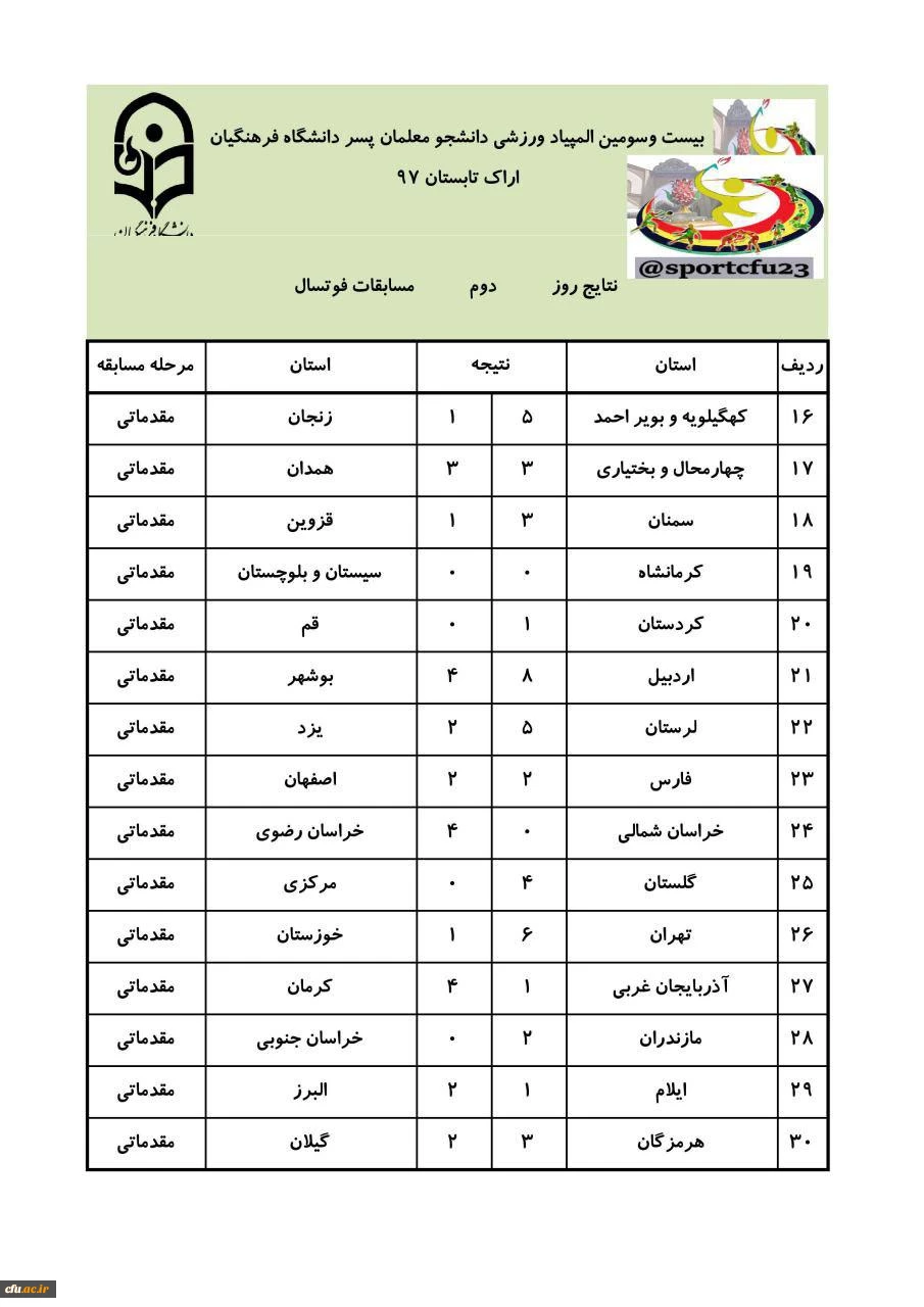 نتایج سه رشته ی دو و میدانی، کشتی و تکواندو در رقابت های المپیاد ورزشی دانشجو معلمان پسر 19