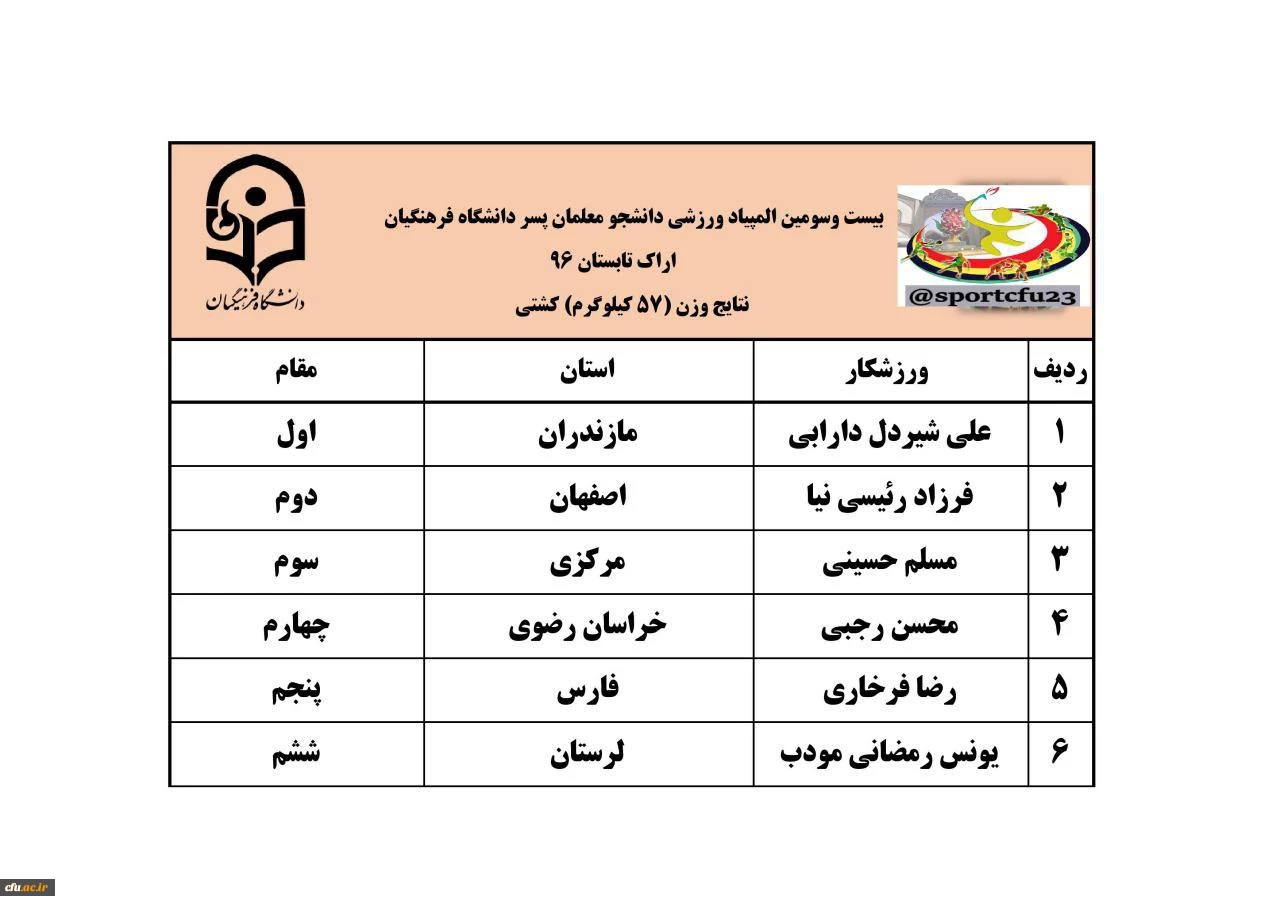 نتایج سه رشته ی دو و میدانی، کشتی و تکواندو در رقابت های المپیاد ورزشی دانشجو معلمان پسر 20