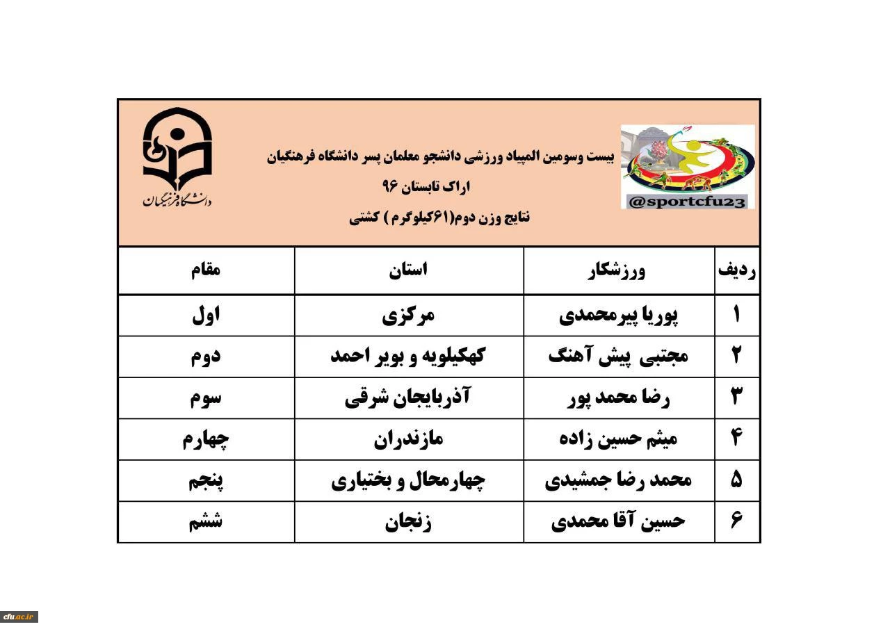 نتایج سه رشته ی دو و میدانی، کشتی و تکواندو در رقابت های المپیاد ورزشی دانشجو معلمان پسر 24