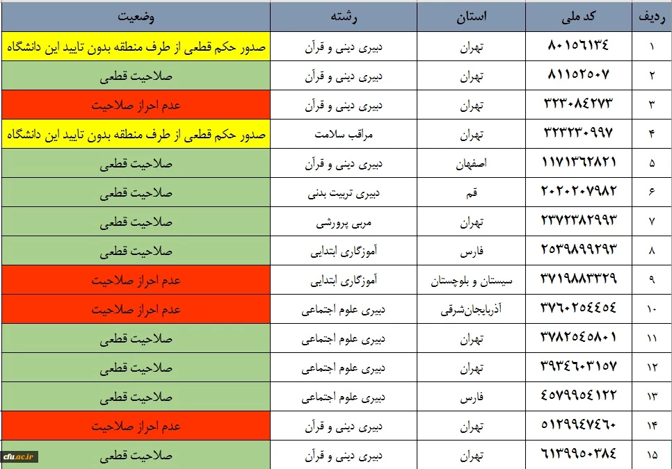 اعلام نتایج نهایی آزمون جبرانی مهارت آموزان باقی مانده ماده 28 ورودی 94  2