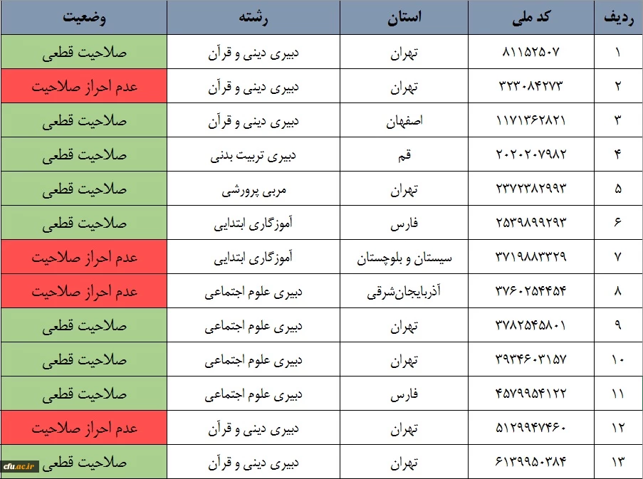 اعلام نتایج نهایی آزمون جبرانی مهارت آموزان باقی مانده ماده 28 ورودی 94 3
