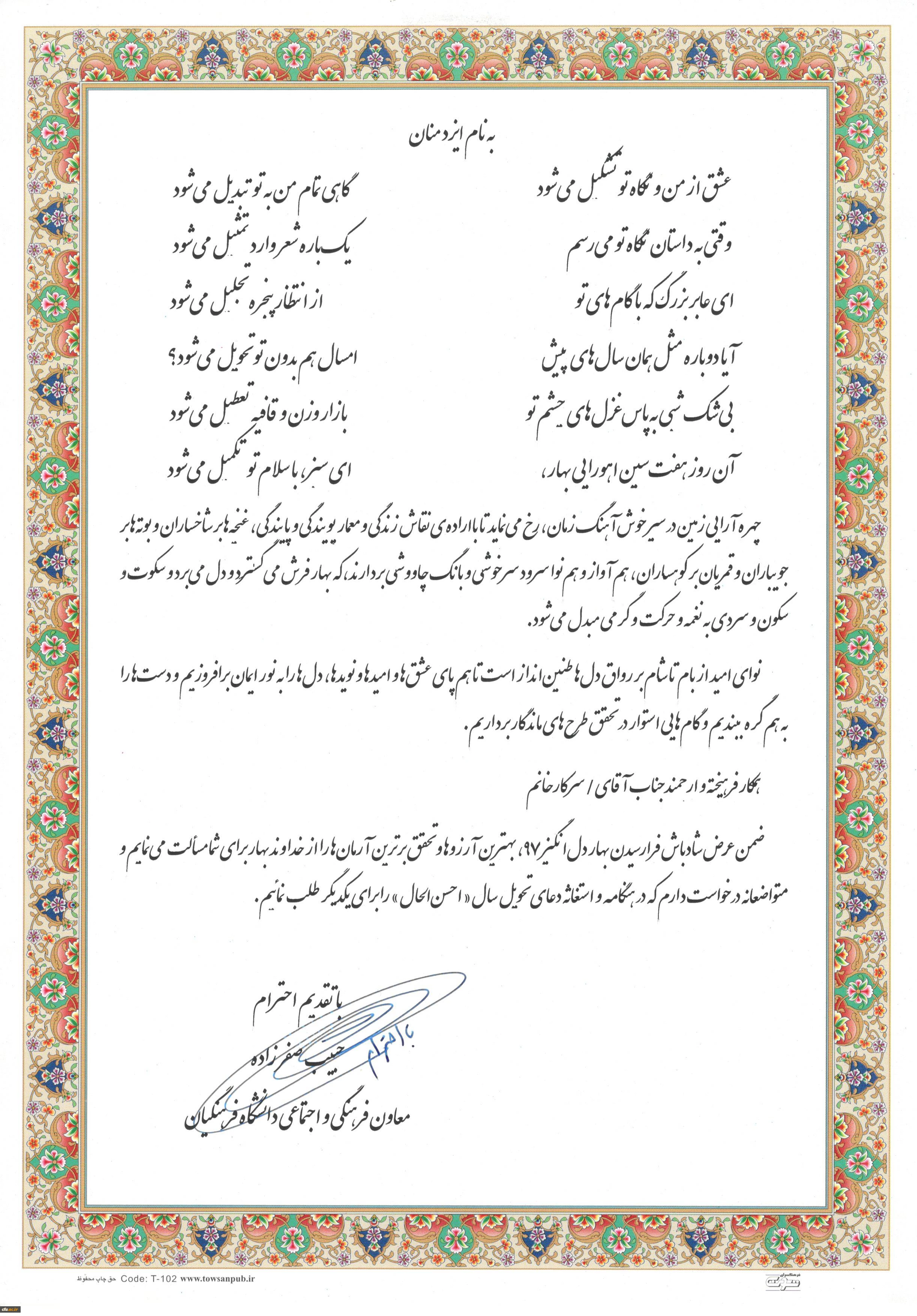 پیام نوروزی سرپرست محترم معاونت فرهنگی و اجتماعی دانشگاه فرهنگیان به مناسبت آغاز سال 1397 3