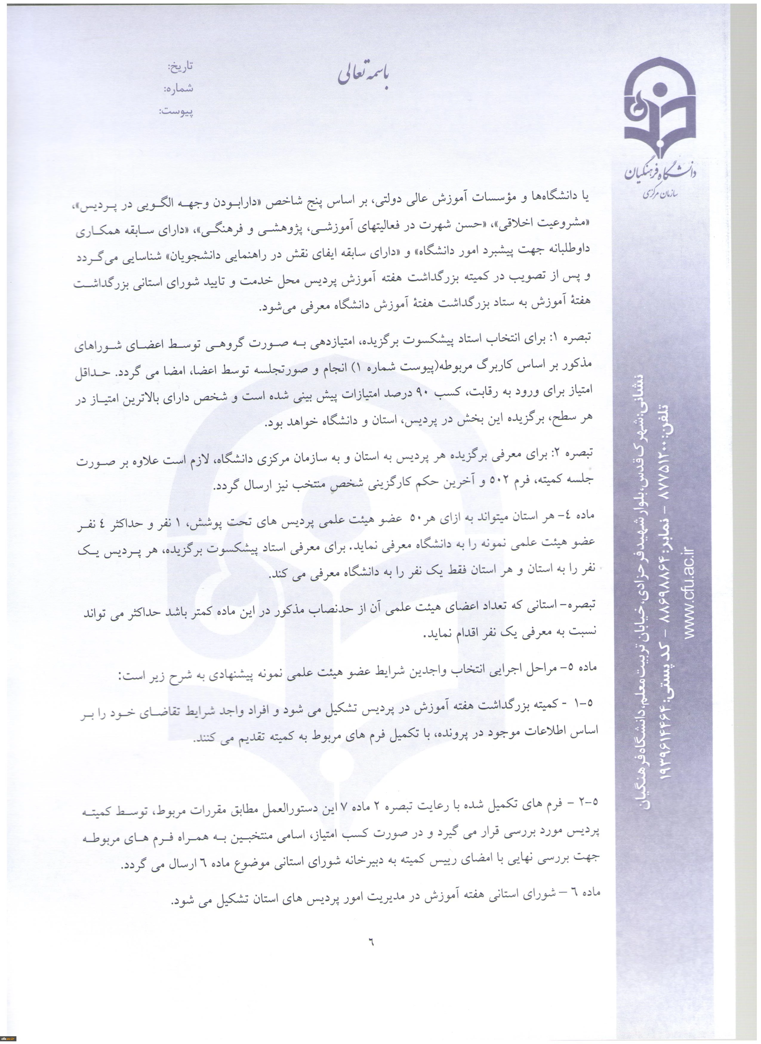 اطلاعیه معاونت آموزش و تحصیلات تکمیلی: دستورالعمل انتخاب اعضای هیات علمی نمونه کشوری و پیشکسوت برگزیده 4