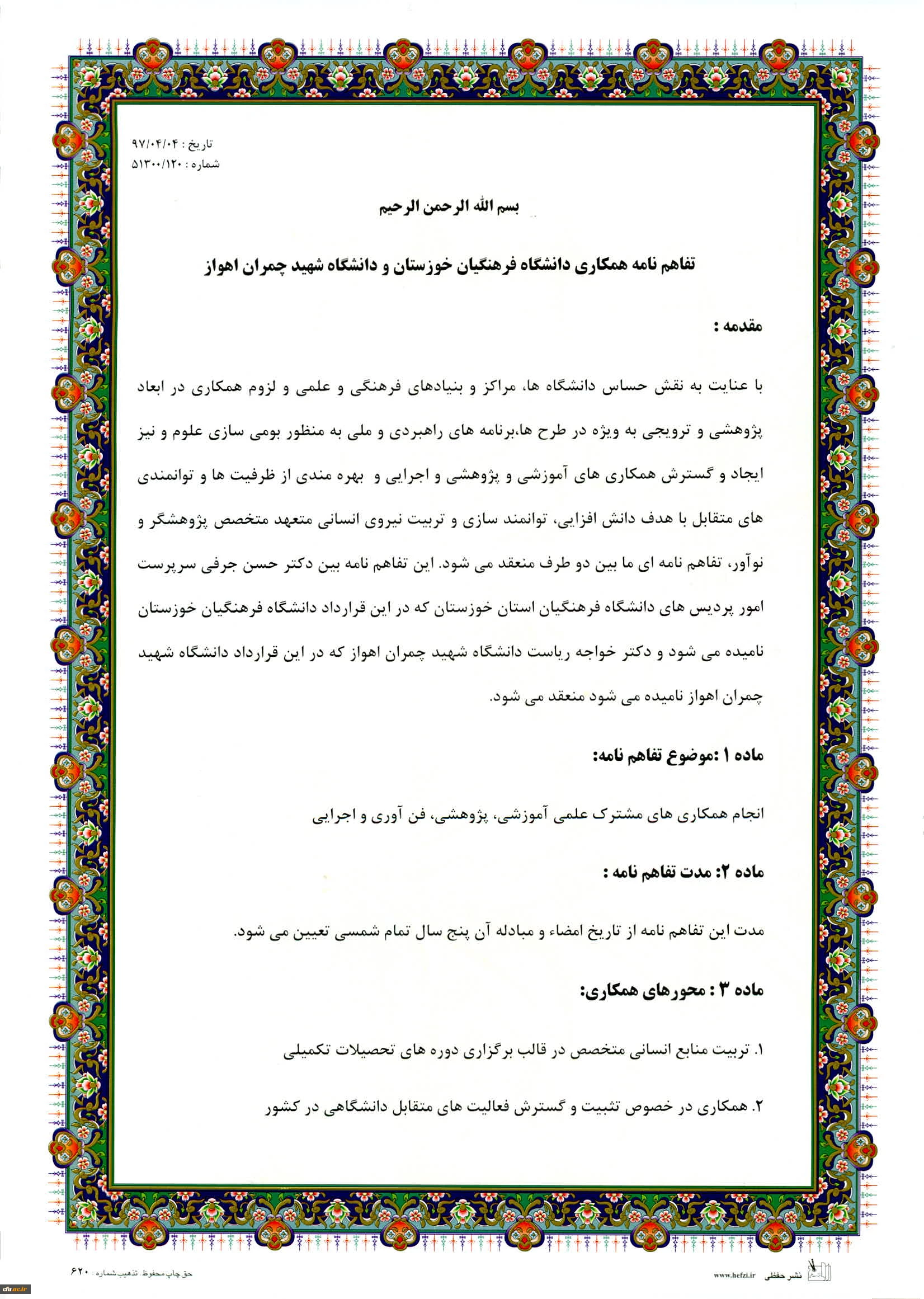 انعقاد تفاهم نامه همکاری میان دانشگاه فرهنگیان استان خوزستان با دانشگاه شهید چمران اهواز 2