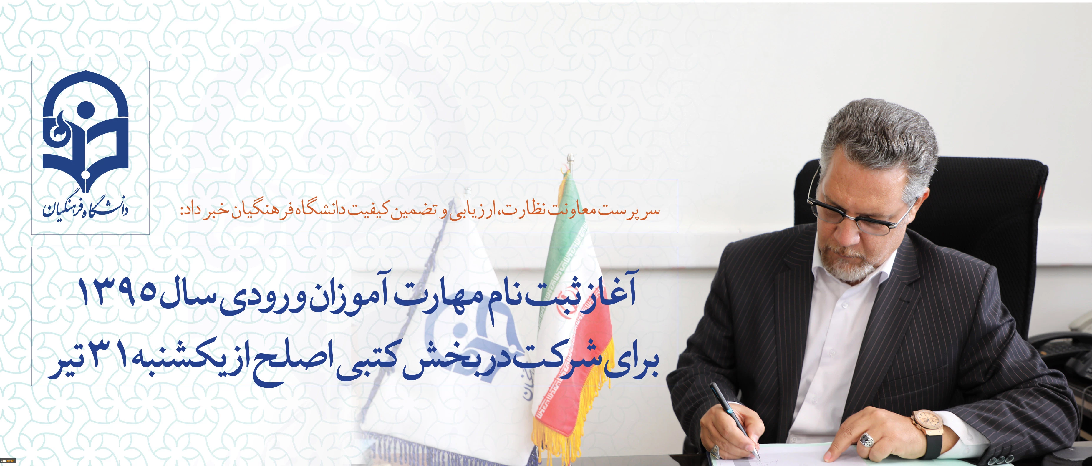 سرپرست معاونت نظارت، ارزیابی و تضمین کیفیت دانشگاه فرهنگیان خبر داد: آغاز ثبت نام مهارت آموزان ورودی سال 1395 برای شرکت در بخش کتبی اصلح از فردا یکشنبه 31 تیر ماه 2