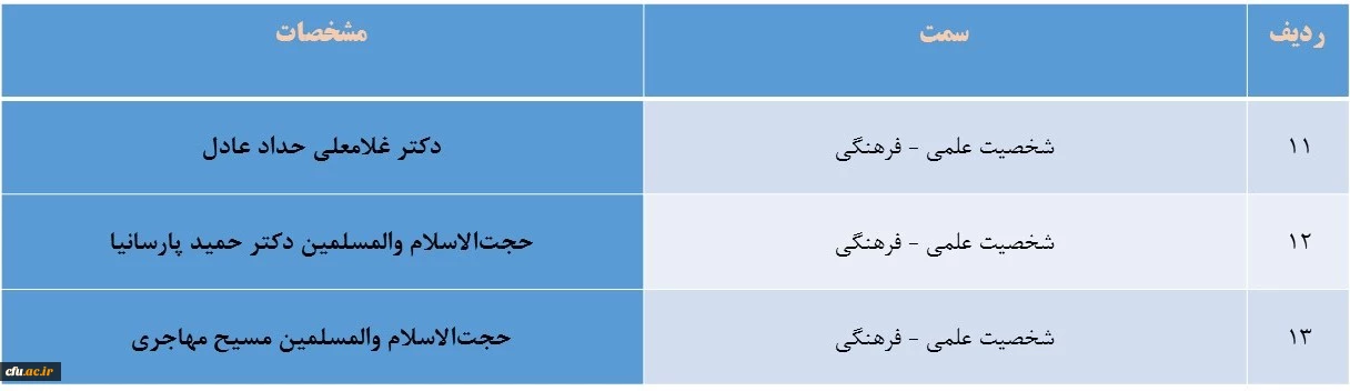 ترکیب اعضای محترم هیات امنای دانشگاه فرهنگیان بر اساس ماده  (7) اساسنامه 2