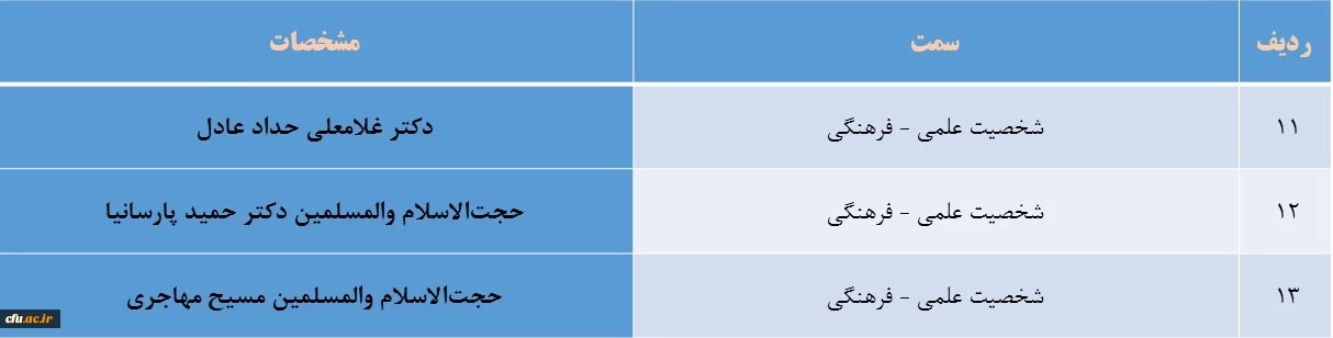 ترکیب اعضای محترم هیات امنای دانشگاه فرهنگیان بر اساس ماده  (7) اساسنامه 2