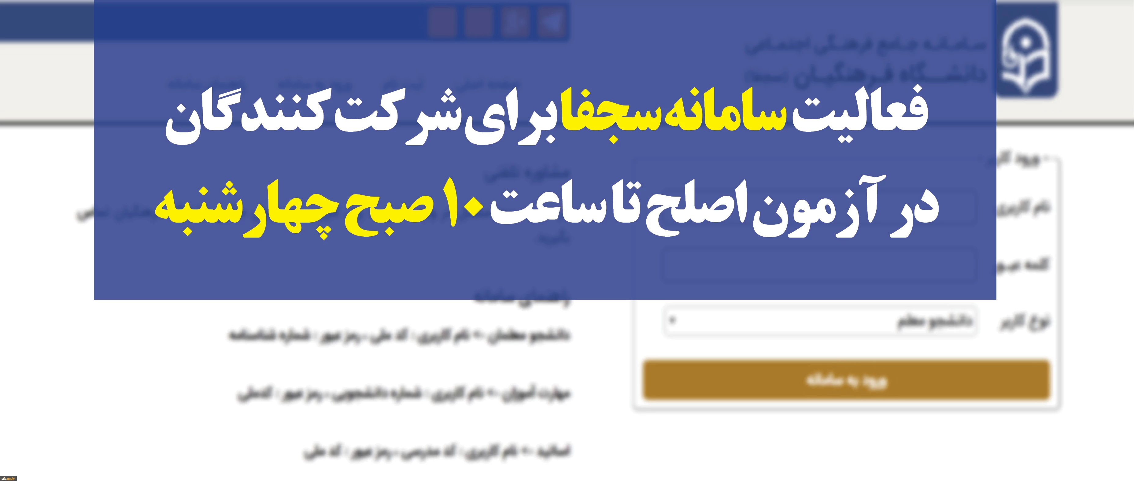سرپرست معاونت نظارت، ارزیابی و تضمین کیفیت دانشگاه فرهنگیان: سامانه سجفا برای شرکت کنندگان در آزمون اصلح تا ساعت 10 صبح چهارشنبه فعال است 2