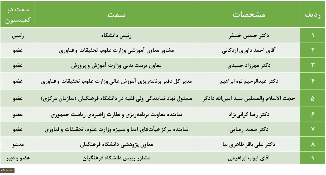 ترکیب اعضای محترم کمیسیون دائمی هیأت امنای دانشگاه فرهنگیان 2
