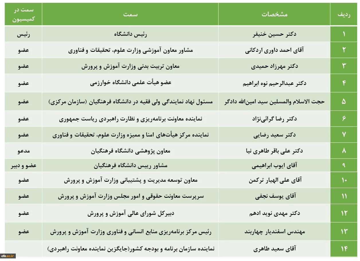 ترکیب اعضای محترم کمیسیون دائمی هیأت امنای دانشگاه فرهنگیان 2