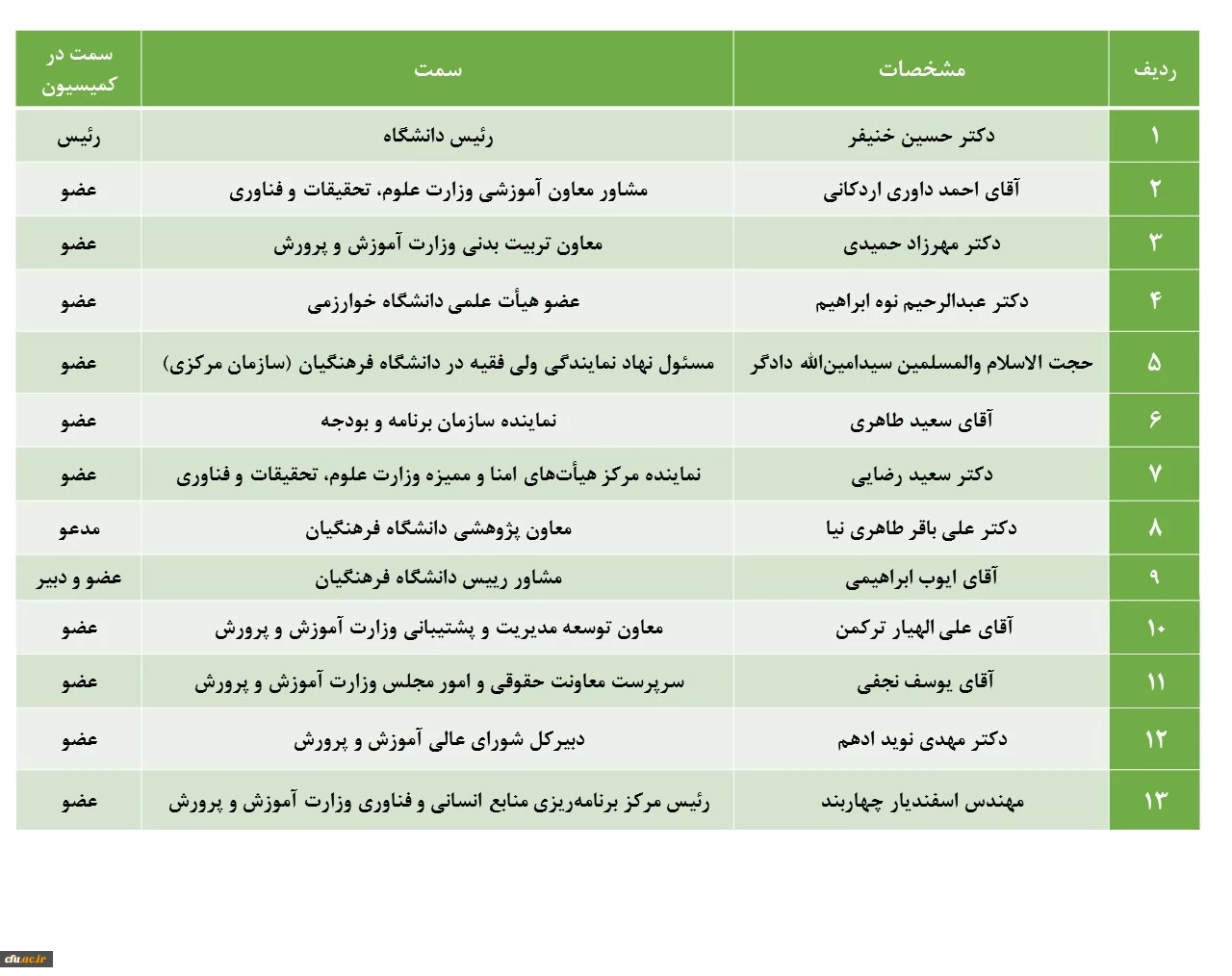 ترکیب اعضای محترم کمیسیون دائمی هیأت امنای دانشگاه فرهنگیان 2