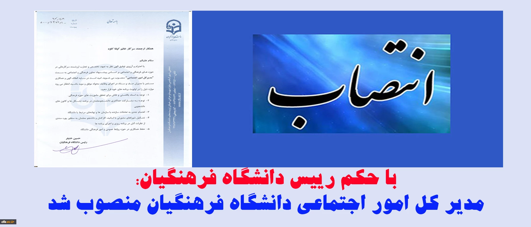 مدیر کل امور اجتماعی دانشگاه فرهنگیان منصوب شد