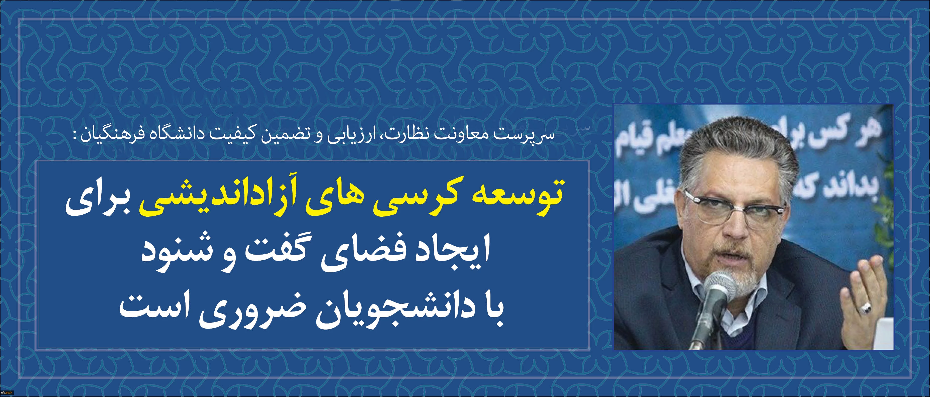 سرپرست معاونت نظارت، ارزیابی و تضمین کیفیت در مراسم استقبال از نو دانشجو معلمان دانشگاه فرهنگیان استان کرمانشاه: توسعه کرسی های آزاداندیشی برای ایجاد فضای گفت و شنود با دانشجویان ضروری است 2