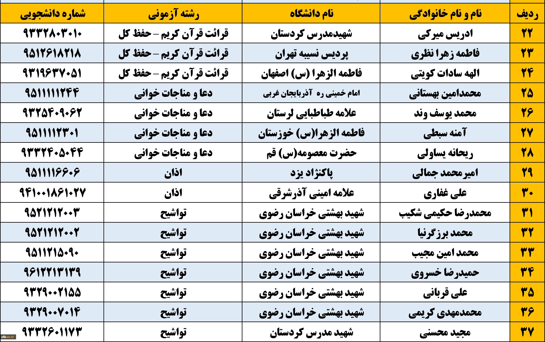 اسامی راه یافتگان مرحله ملی سی وسومین جشنواره قرآن و عترت دانشجویان سراسر کشور