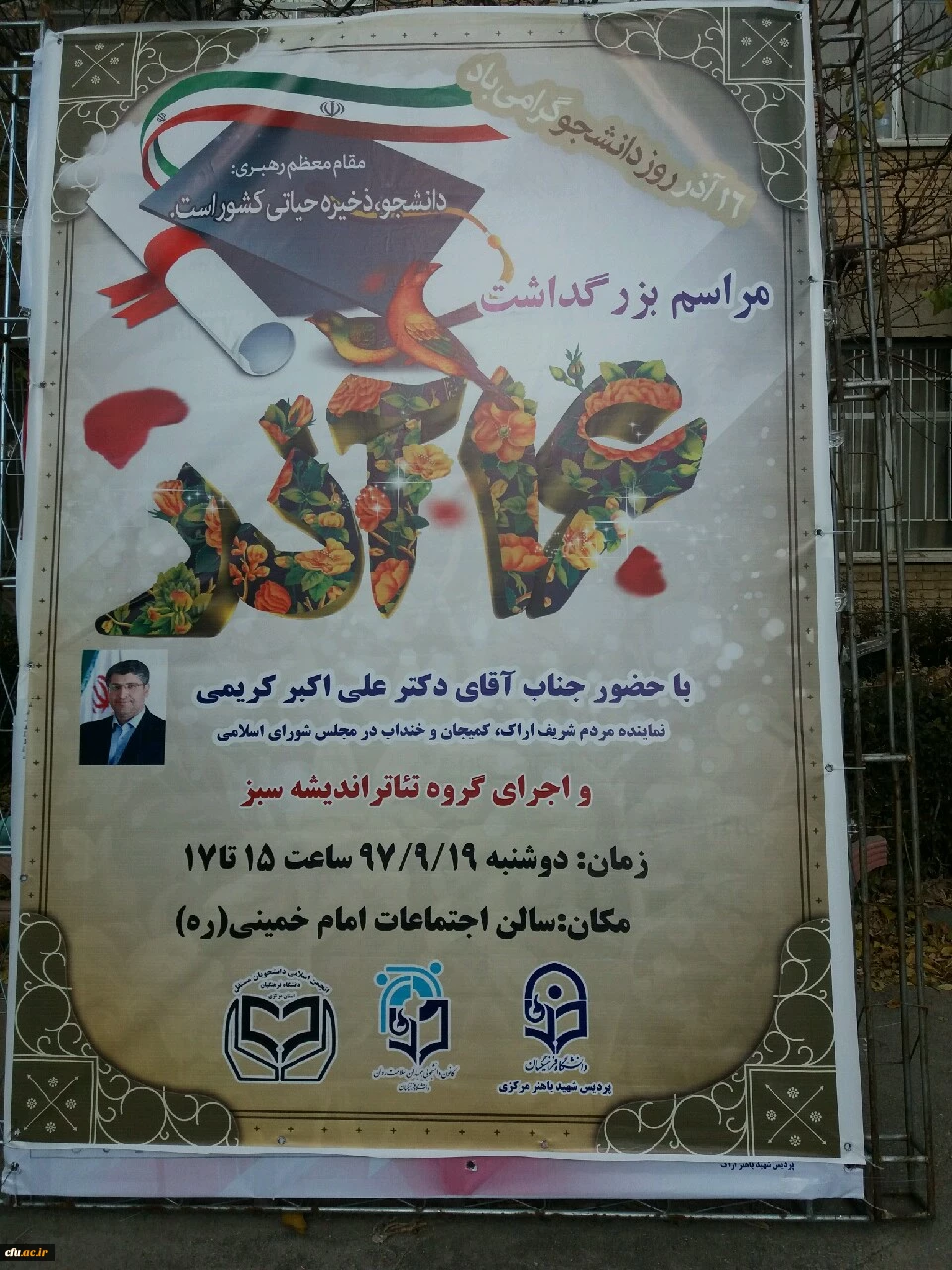 باحضور دکتر کریمی نماینده محترم مردم اراک در مجلس شورای اسلامی برگزار شد مراسم بزرگداشت روزدانشجو در دانشگاه فرهنگیان استان مرکزی 2